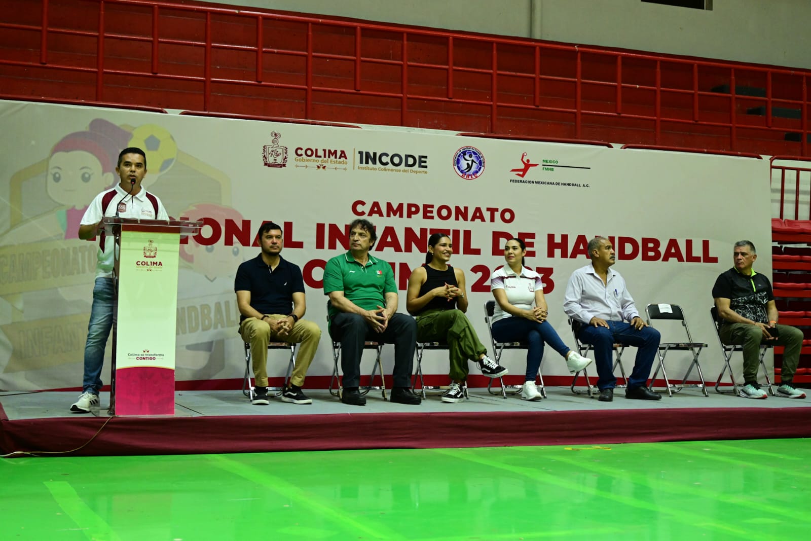 En la inauguración también se contó con la presencia de Viridiana Valencia Vargas, delegada de Programas para el Bienestar del Gobierno de México en Colima; Adolfo Núñez González, secretario de Educación y Cultura del Gobierno del Estado y Miguel Contreras de la Mora, Presidente de la Asociación Estatal de Handball, así como Arturo Contreras Bonilla, director de Centros del Deporte Escolar y Municipal.