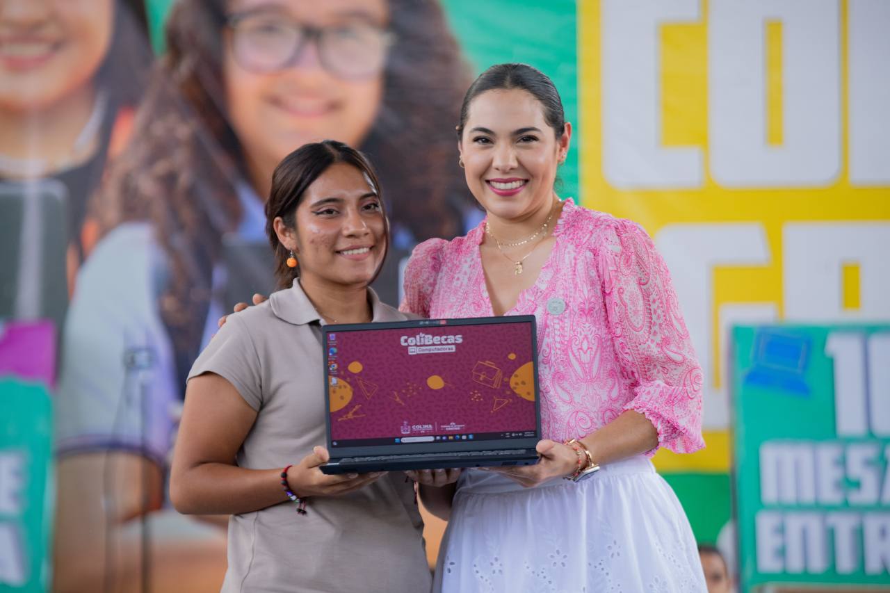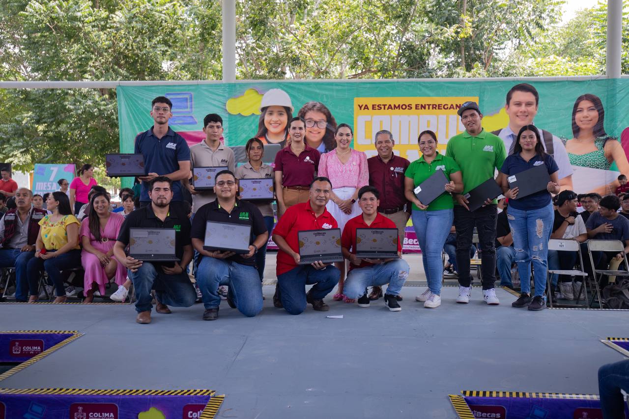 El programa de ColiBecas Computadoras gratuitas que lleva a cabo el Gobierno del Estado de Colima beneficia este martes 872 estudiantes de la Universidad Tecnológica de Manzanillo (UTeM), durante dos macro-entregas que encabezó la gobernadora Indira Vizcaíno Silva, en esta misma institución, en el municipio manzanillense. Son casi 30 mil computadoras que se entregan este año y un número igual el año pasado, para un total de 60 mil laptops gratuitas, entre secundarias, licenciaturas e ingenierías de instituciones públicas.