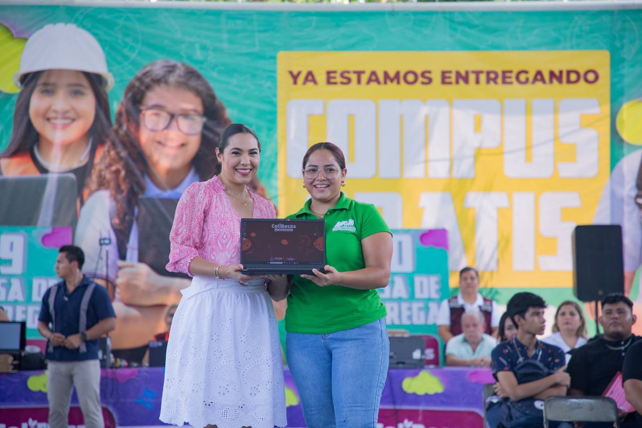 Hoy reciben una computadora de muy buena calidad con las características necesarias, con un año de garantía, y les pidió que la cuiden mucho. “El dinero se maneja con honestidad y transparencia, y los recursos regresan en beneficio para la gente, por eso hoy si alcanza para apoyar a estudiantes, a personas adultas mayores, a personas con discapacidad, becas, crear nuevas universidades, etc.”