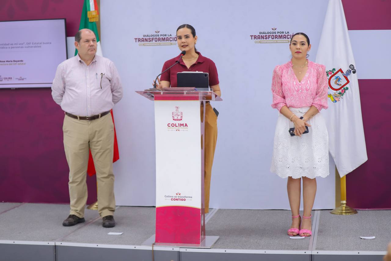 Este martes en la conferencia de prensa Diálogos por la Transformación desde el municipio de Manzanillo, la gobernadora de Colima, Indira Vizcaíno Silva, y la directora del DIF Estatal, Rosa María Bayardo Cabrera, presentaron el programa ‘Mi identidad es mi voz’, mediante el cual se busca dar certeza jurídica a personas vulnerables.