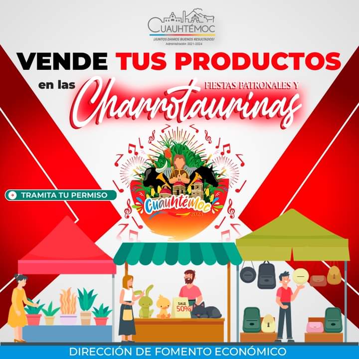 Por último, si te interesa vender en las Fiestas Tradicionales y Charrotaurinas, puedes tramitar tu permiso en la Dirección de Fomento Económico de Cuauhtémoc.