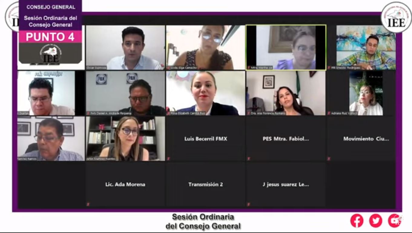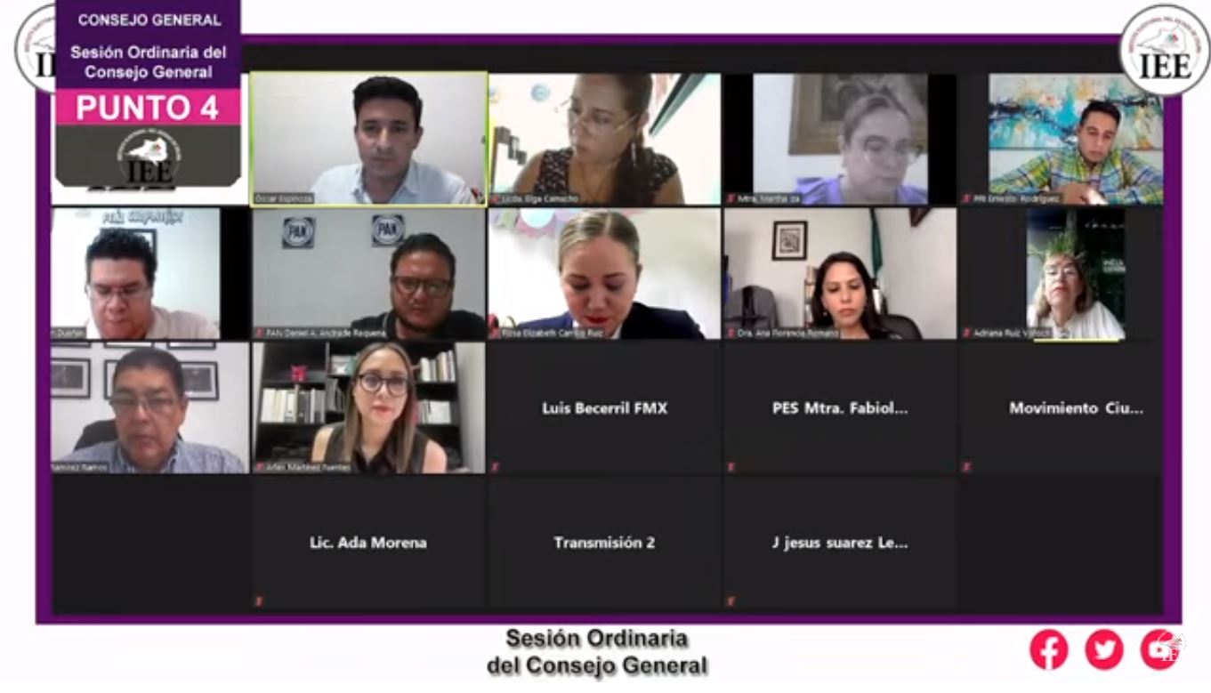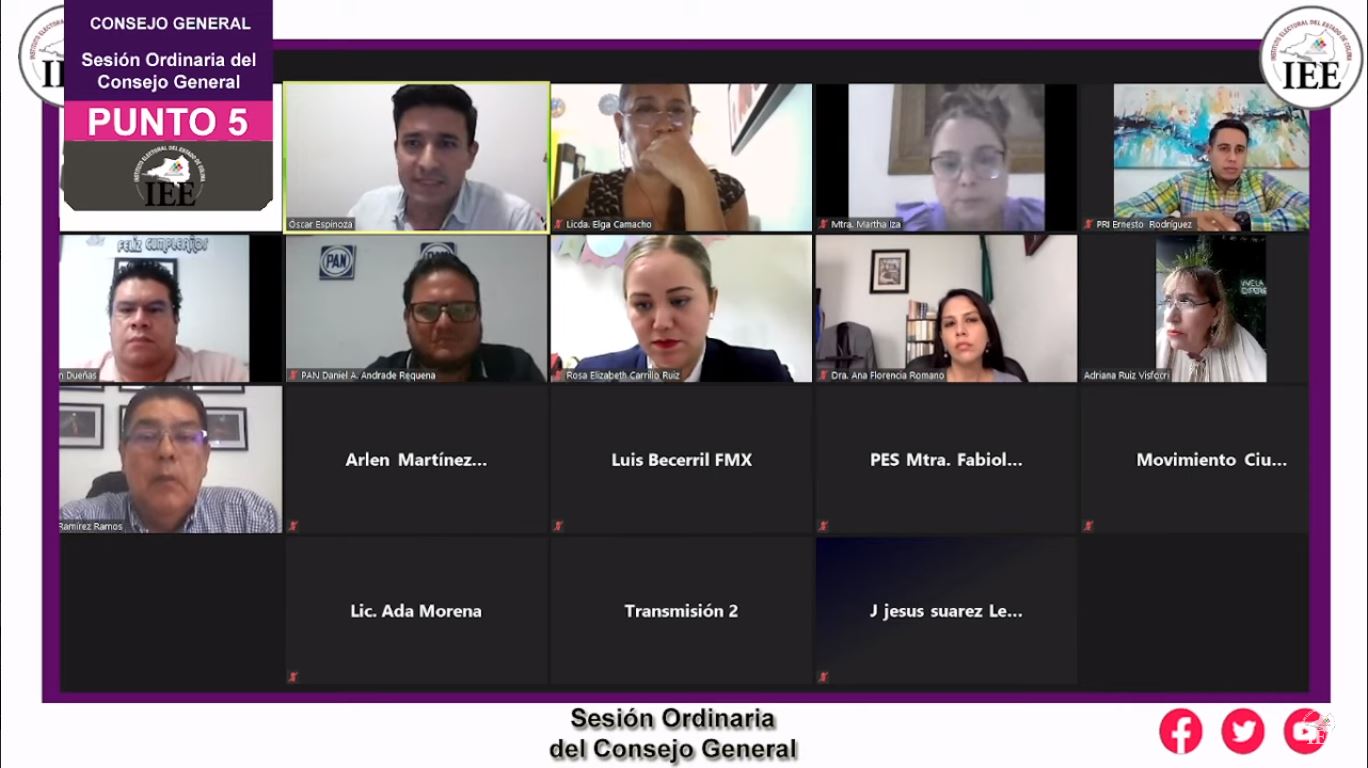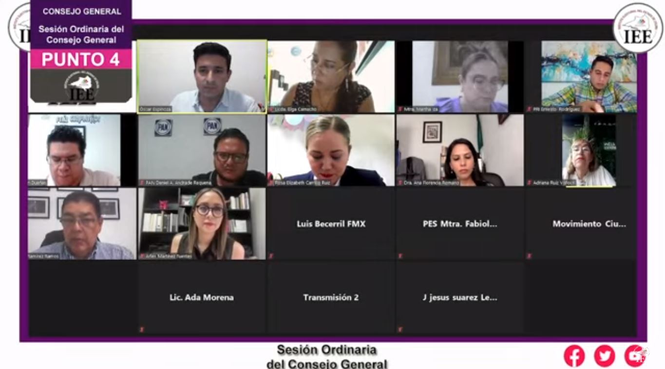 Lo anterior durante la Octava Sesión Ordinaria del Periodo Interproceso 2021-2023, celebrada este viernes 29 de septiembre, en la que además se aprobó la fe de erratas a los lineamientos para las candidaturas del Proceso Electoral Local 2023-2024, aprobados mediante los acuerdos IEE/CG/A058/2023 e IEE/CG/A059/2023; así como la modificación del acuerdo IEE/CG/A061/2023, ratificando al titular de la Dirección de Sistemas del órgano local como Instancia Interna y como Coordinador del desarrollo de las actividades del Programa de Resultados Electorales Preliminares (PREP).