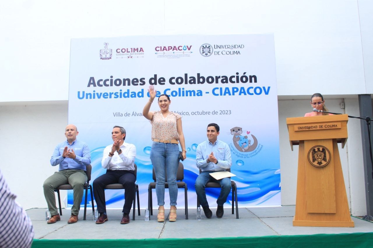 La tarde de este miércoles 3 de octubre, tuvo lugar en la explanada del Campus Villa de Álvarez de la Universidad de Colima (UCOL) la presentación de las acciones conjuntas entre el organismo operador del agua de los municipios de Colima y la máxima casa de estudios de la entidad, en el evento estuvieron presentes la Gobernadora Constitucional del Estado de Colima, la Licda. Indira Vizcaíno Silva, en compañía del Director General de CIAPACOV, C. Vladimir Parra Barragán, y el Rector de la Universidad de Colima, Dr. Christian Jorge Torres Zermeño.