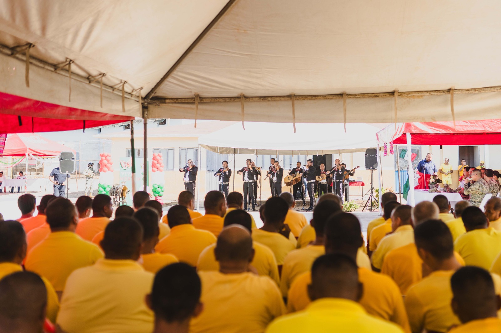 En esta ocasión, 100 personas privadas de su libertad, así como funcionarios y trabajadores, disfrutaron de un evento musical alusivo a las fiestas patrias. A la sonoridad y fuerza del Mariachi Universidad de Colima, que dirige el maestro Eliseo Madrigal, se sumó uno de los reclusos para interpretar “Si nos dejan”, del compositor mexicano José Alfredo Jiménez y “Cielo rojo”, de Juan Záizar.