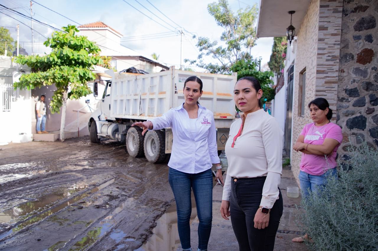 Como primer punto, la mandataria estatal acudió a las calles Leocadio García y Gustavo Díaz Ordaz, en el Barrio Nuevo Salagua, que resultaron azolvadas tras las intensas lluvias de este martes, atendiendo inquietudes y planteamientos de manzanillenses.