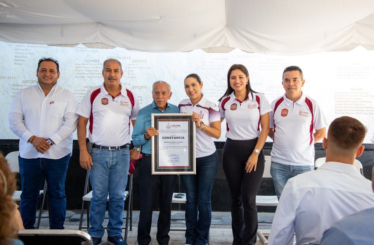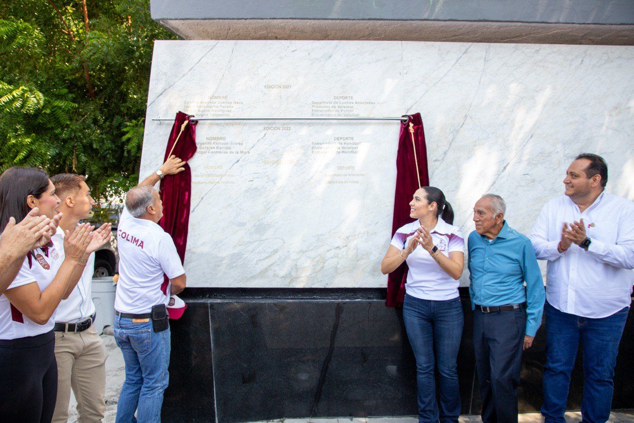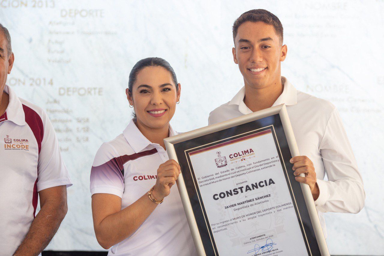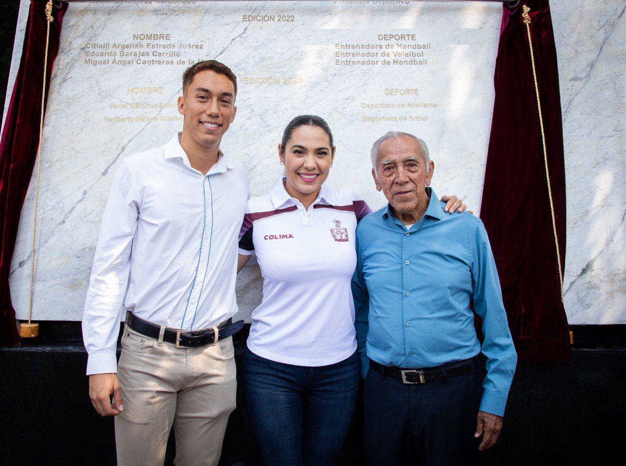 La gobernadora Indira Vizcaíno Silva encabezó este sábado la ceremonia de develación de nombres que integran el Muro de Honor del Deporte Colimense, en el que añadió a los deportistas Javier Martínez Sánchez y Heriberto Medina Villafaña; reiteró el firme compromiso del Gobierno del Estado de Colima con el deporte y la cultura física, la responsabilidad de fomentar su práctica y brindar oportunidades para que las y los atletas talentosos de nuestra entidad puedan destacar.
