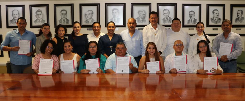 Adolfo Núñez González, secretario de Educación y Cultura del Gobierno del Estado de Colima, presidió la entrega de once Becas Comisión, Ciclo Escolar 2022-2023, proceso que beneficia a docentes para que puedan realizar estudios de especialidad, maestría o doctorado, en instituciones de educación superior; cumpliendo los lineamientos que marca la Ley General del Sistema para la Carrera de las Maestras y los Maestros.