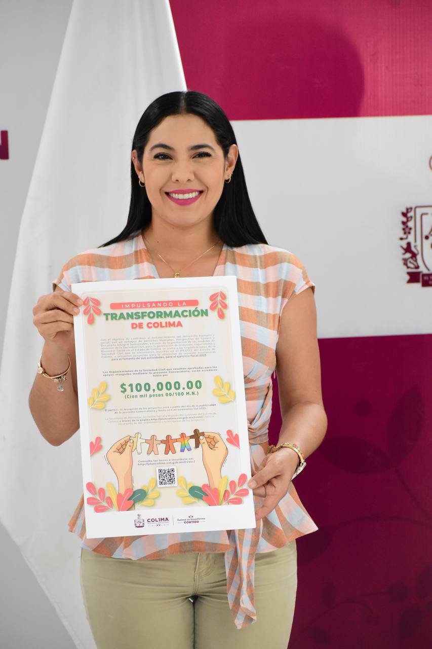 El Gobierno del Estado de Colima, a través de la Secretaría de Bienestar, Inclusión Social y Mujeres (Sebiinsom) apoyará a treinta organizaciones de la sociedad civil con cien mil pesos cada una, para que realicen algún proyecto en beneficio del sector que atienden, informó la titular del Poder Ejecutivo estatal, Indira Vizcaíno Silva, en la rueda de prensa semanal Diálogos por la Transformación, este martes.