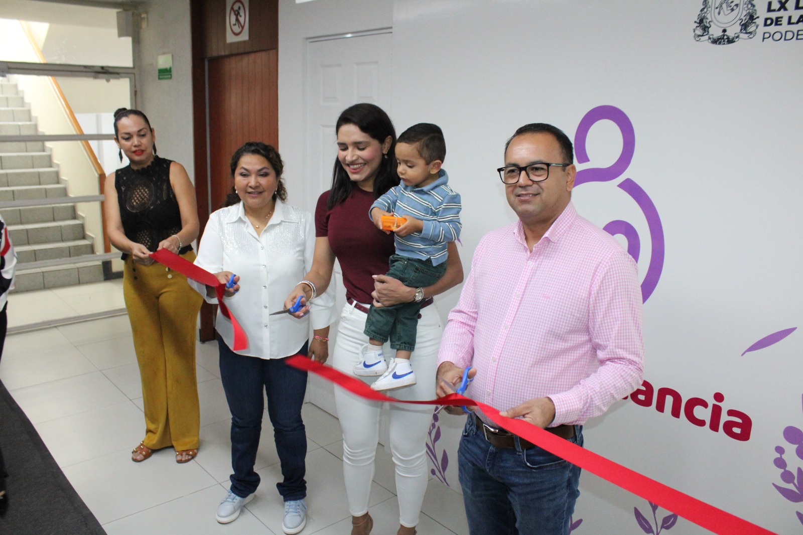 Esta mañana, en las instalaciones del Poder Legislativo, se inauguró la Sala de Lactancia, con la finalidad de proteger el derecho a la salud de niñas y niños, desde sus primeros meses de vida, fomentando que las madres tengan facilidades para desarrollar la lactancia materna. También, en un momento posterior, se inauguró la Ludoteca, que proporcionará a las y los trabajadores un espacio adecuado y con lo mínimo indispensable, para hijas e hijos de trabajadores que, por su jornada de trabajo, requieran de este servicio recreativo y de aprendizaje mientras prestan sus servicios en esta dependencia.