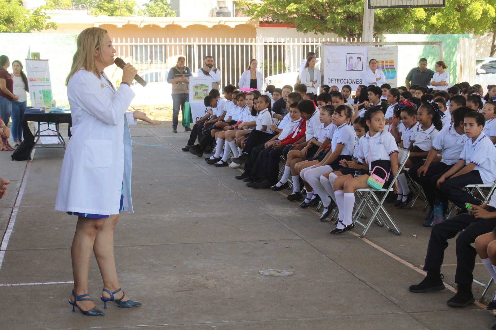 Asistieron el titular estatal del IMSS-Bienestar, Armando de la Mora Morfín, y representantes del IMSS, ISSSTE, Décima Región Naval y Vigésima Zona Militar, se ofreció una Feria de la Salud con módulos que ofertaron detecciones de somatometría para búsqueda de bajo peso, sobrepeso, obesidad o desnutrición, agudeza visual y vacunación, así como información y orientación sobre alimentación correcta y actividad física, salud mental y adicciones, prevención de accidentes, prevención y control de vectores.
