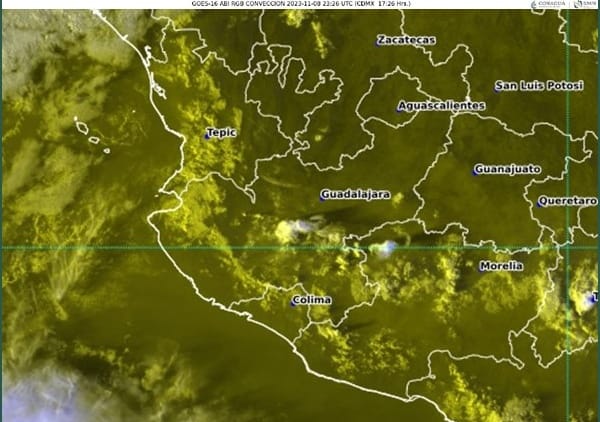 En el Pacífico Centro, el organismo de la Comisión Nacional del Agua (Conagua) estima cielo con medio nublado por la mañana y nublado por la tarde, con lluvias puntuales fuertes acompañadas de descargas eléctricas y posible caída de granizo en *Colima,* Jalisco, Michoacán y Nayarit, mismas que podrían ocasionar encharcamientos, deslaves o inundaciones.