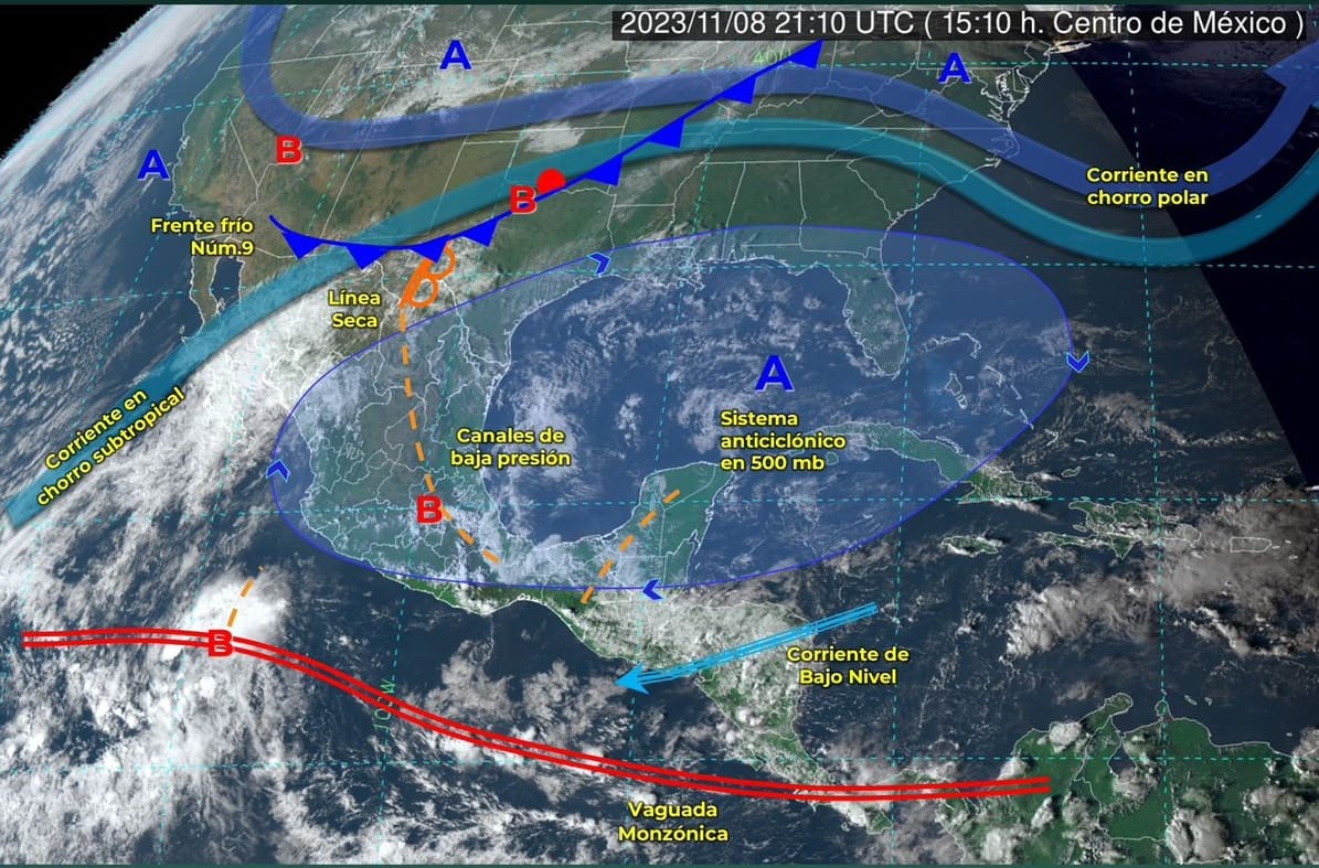 Para este jueves 9 de noviembre, el SMN estima que en el estado de Colima puedan registrarse temperaturas máximas de entre 35 y 40 grados Celsius, al igual que en Sonora, Nuevo León, Tamaulipas, San Luis Potosí, Sinaloa, Nayarit, Jalisco, Michoacán, Guerrero, Oaxaca, Chiapas, Campeche, Yucatán y Quintana Roo.