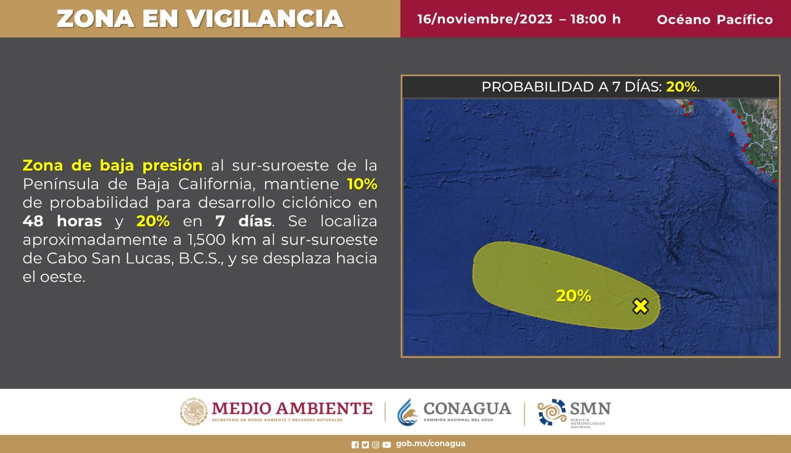 Durante las próximas horas, un canal de baja presión sobre el noroeste mexicano, en interacción con inestabilidad en niveles altos de la atmósfera y abundante ingreso de humedad generado por la corriente en chorro subtropical, producirá
