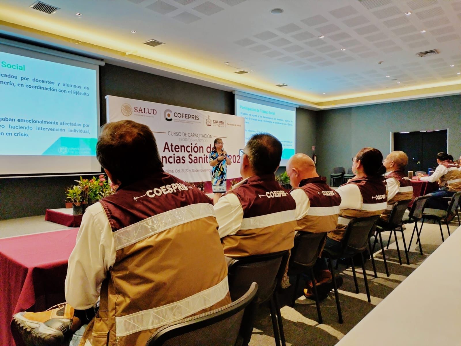 La Secretaría de Salud del Gobierno del Estado de Colima, a través de la Comisión Estatal para la Protección contra Riesgos Sanitarios (Coespris), dota de conocimientos, habilidades y competencias a personal de diversas instituciones para actuar con profesionalismo y humanismo ante una emergencia sanitaria, a través de la identificación y reducción de los factores de riesgos sanitarios asociados a fenómenos antropogénicos y naturales.
