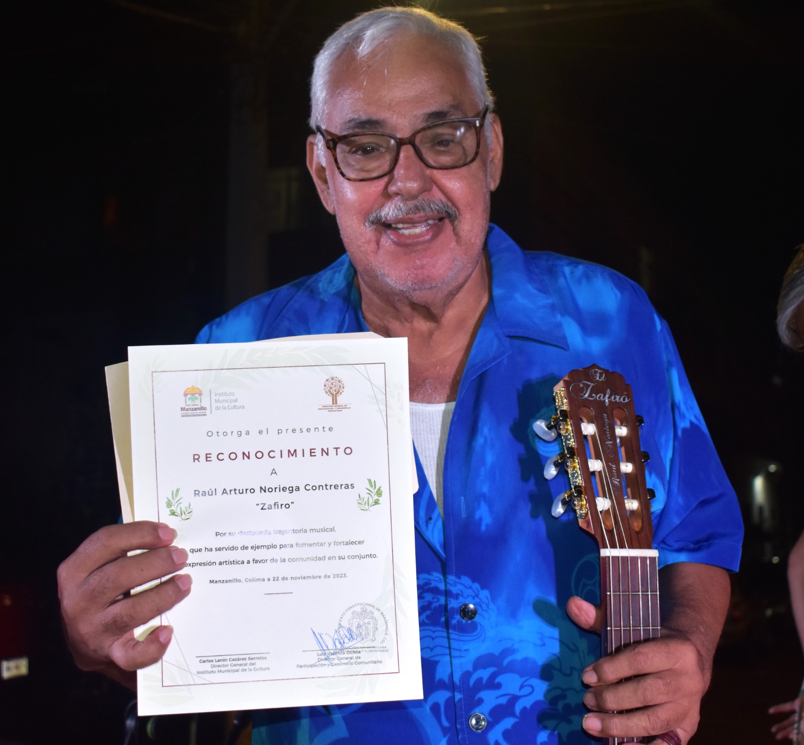 Al término de la presentación artística, Raúl Arturo Noriega Contreras, “El Zafiro” recibió, por parte del Instituto Municipal de la Cultura y la dirección general de Participación y Desarrollo Comunitario, un reconocimiento, por su destacada trayectoria musical, que ha servido de ejemplo para fomentar y fortalecer las expresiones artísticas a favor de la comunidad en su conjunto.