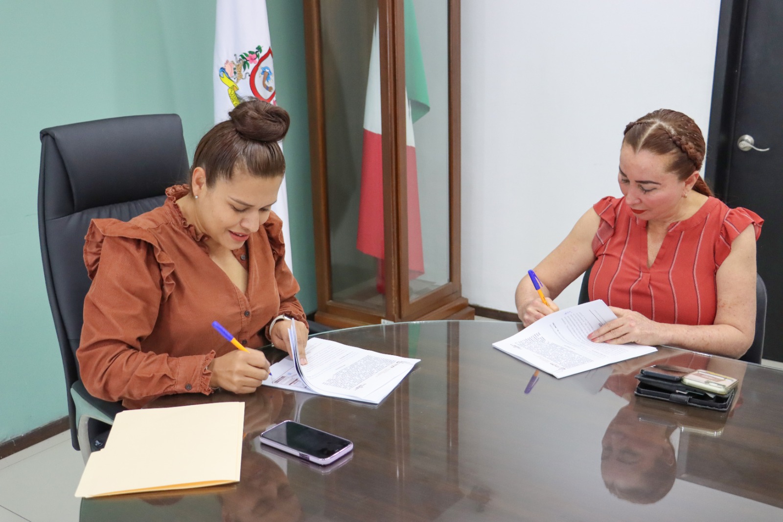 En la firma de este convenio de colaboración estuvieron la titular de la Seidum, Marisol Neri León, la presidenta municipal de Villa de Álvarez, Esther Gutiérrez Andrade, así como funcionarios estatales y municipales.