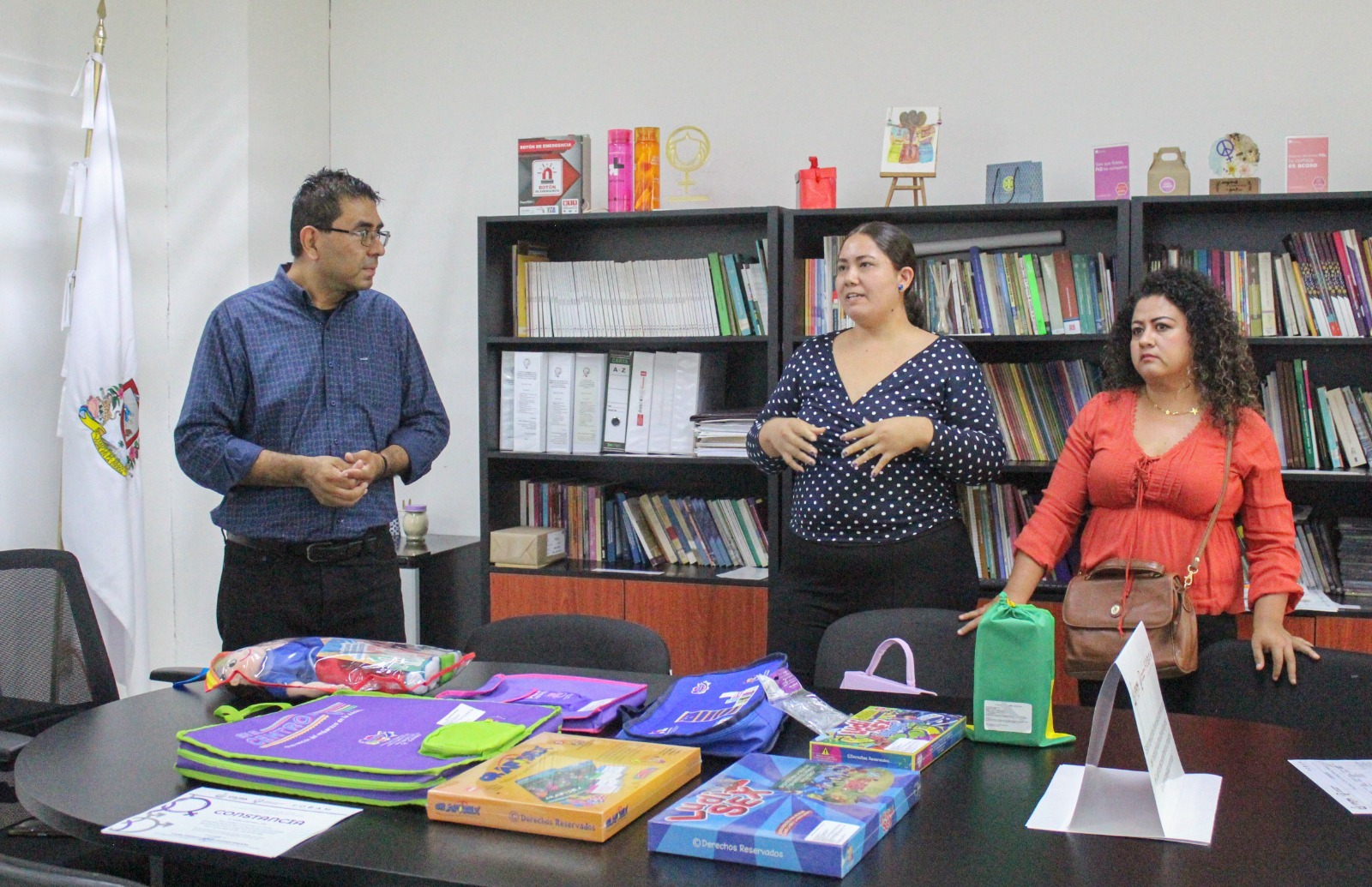 Con el objetivo de facilitar la posibilidad de replicar los conocimientos adquiridos, la encargada del despacho del ICM, Mónica Liliana Campos Magaña, entregó materiales didácticos al coordinador de Operación Territorial del Conafe, Luis Alberto Araoz Ubaldo y a su equipo de trabajo.