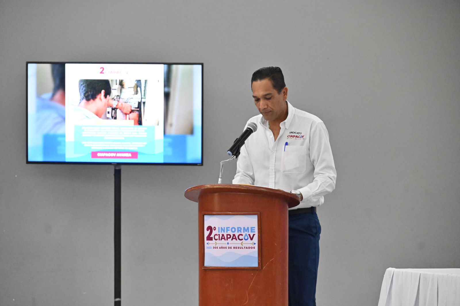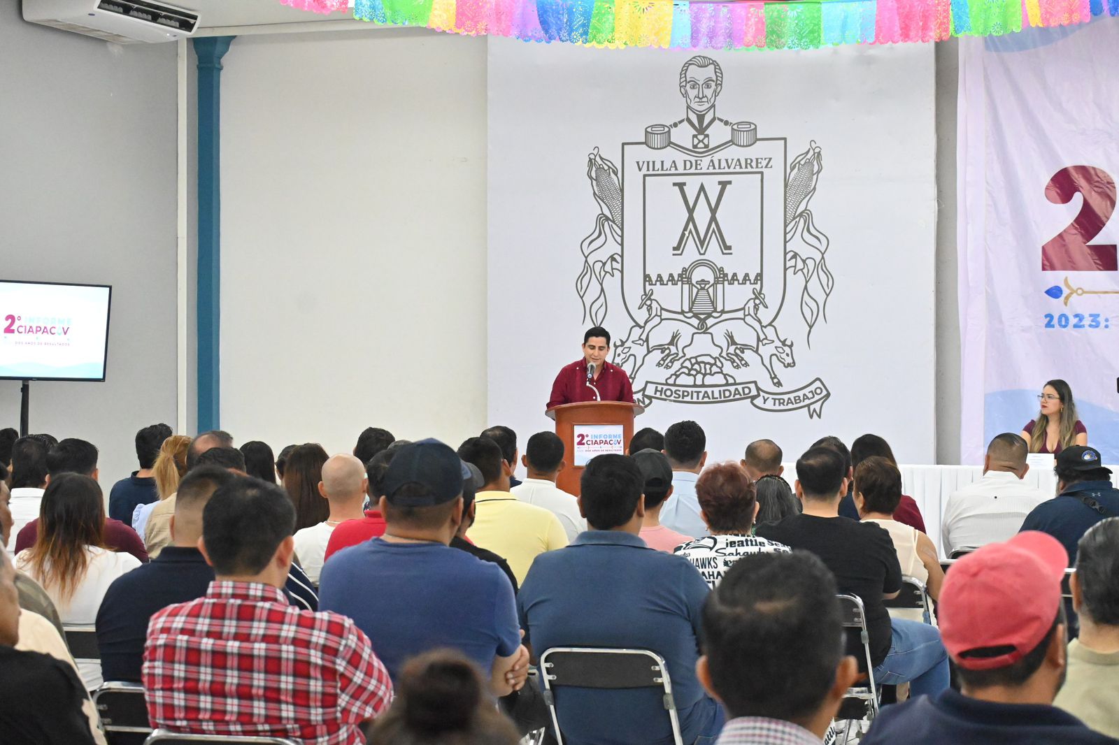 Esta tarde, desde el Salón Presidentes de la Casa de la Cultura de Villa de Álvarez, Vladimir Parra, Director General de la Comisión Intermunicipal de Agua Potable y Alcantarillado de los municipios de Colima y Villa de Álvarez, CIAPACOV, rindió su segundo informe de labores al frente del organismo operador de agua.