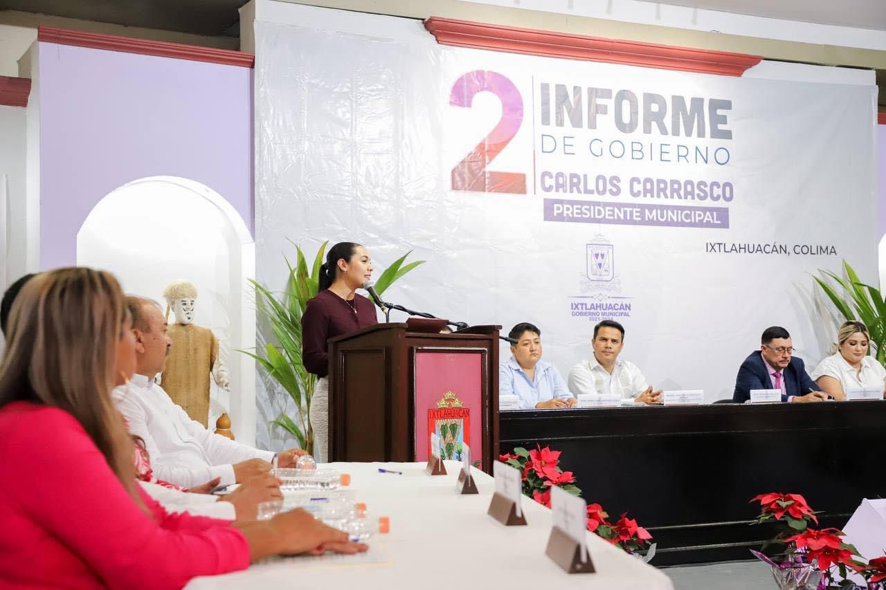 ** En el Segundo Informe del alcalde Carlos Carrasco, la gobernadora colimense dijo que el municipio ha sido un aliado destacado en la búsqueda de condiciones de bienestar para su gente