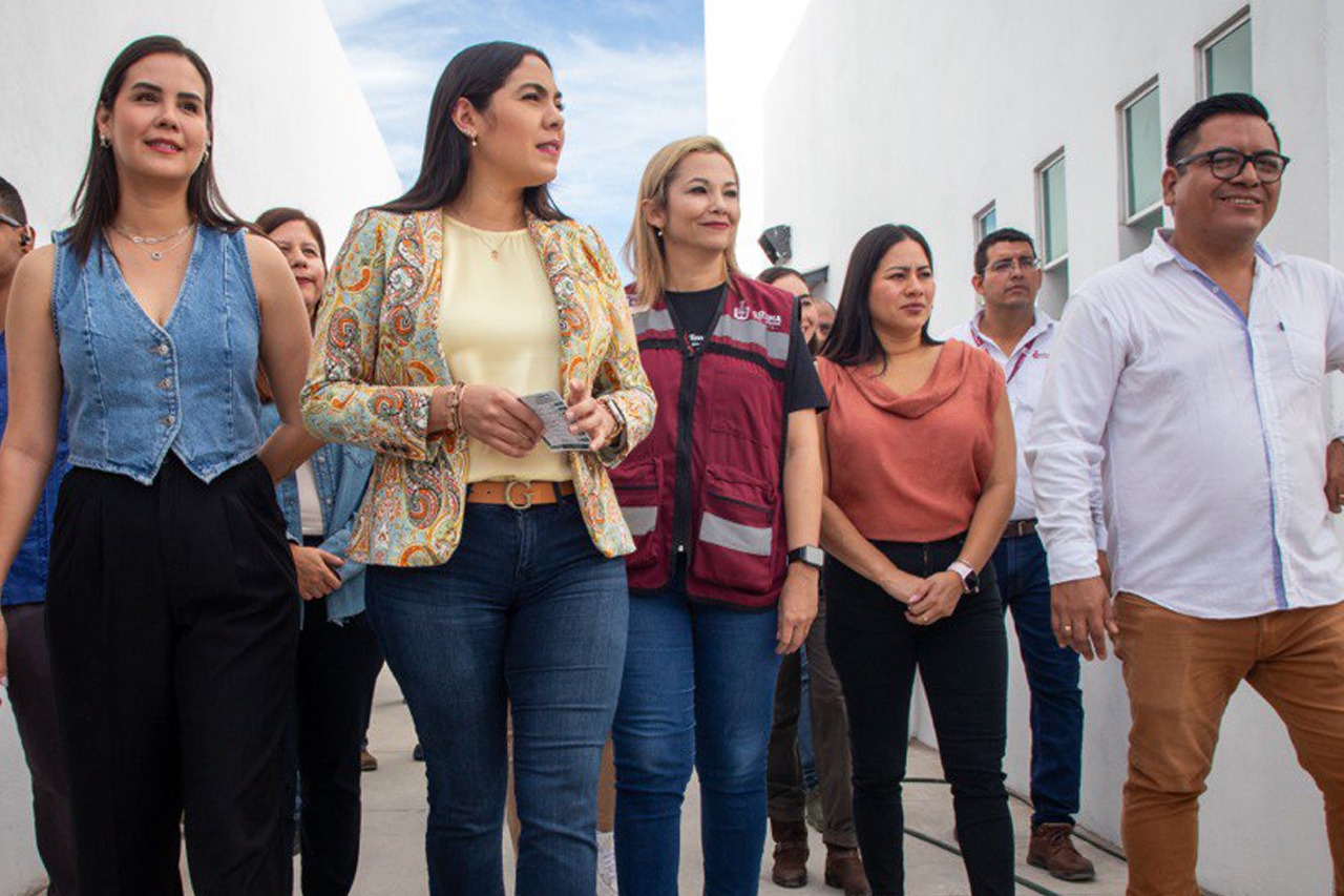 Además de realizar el recorrido de supervisión de avances en el inmueble, la titular del Poder Ejecutivo estatal, acompañada por integrantes de su gabinete, realizó la entrega simbólica de paquetes de uniformes a cinco integrantes del personal de Vectores, que incluyen chaleco, gorra, mochila, guantes, equipo entomológico, lupa y tubos para muestras.