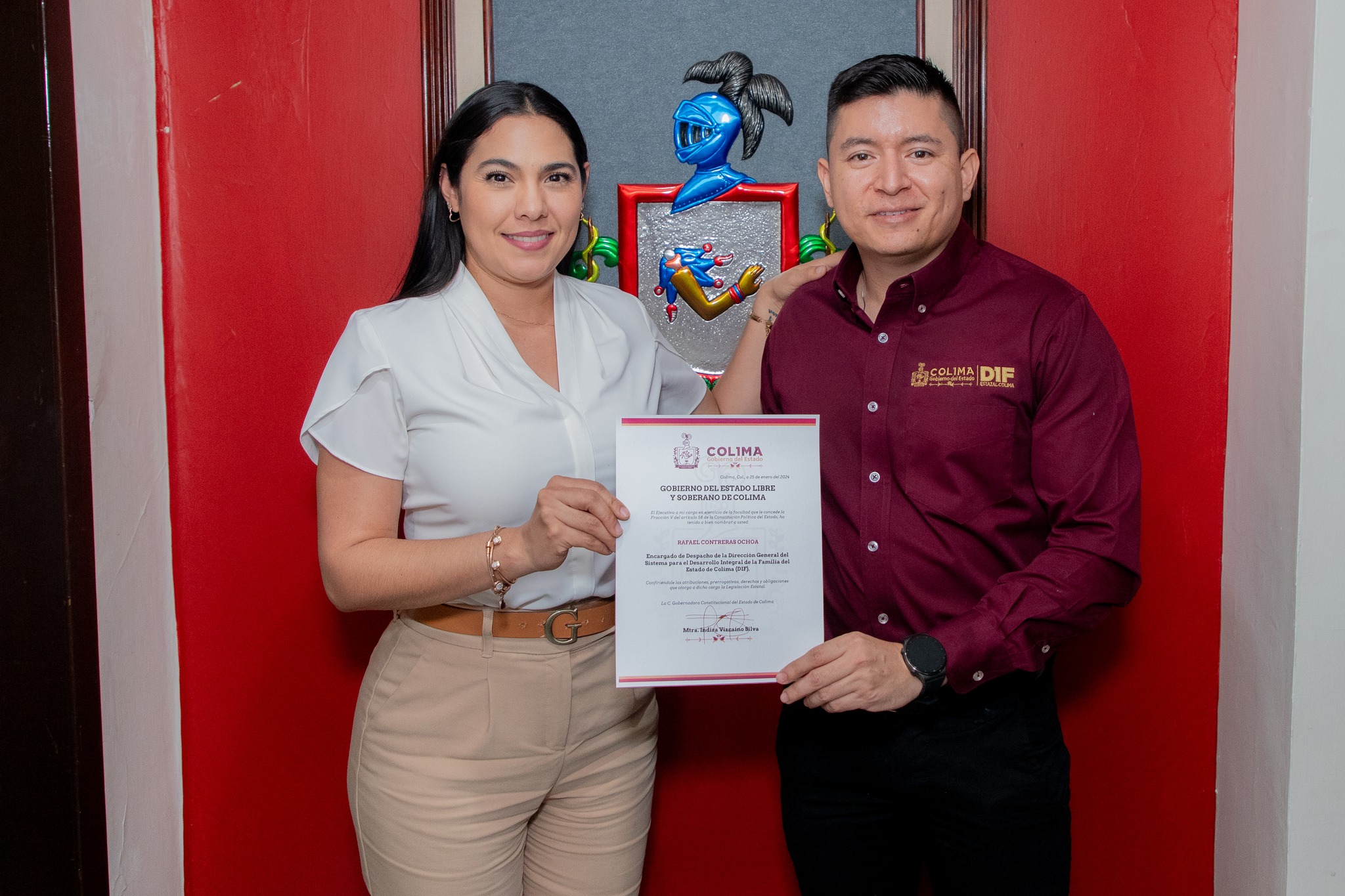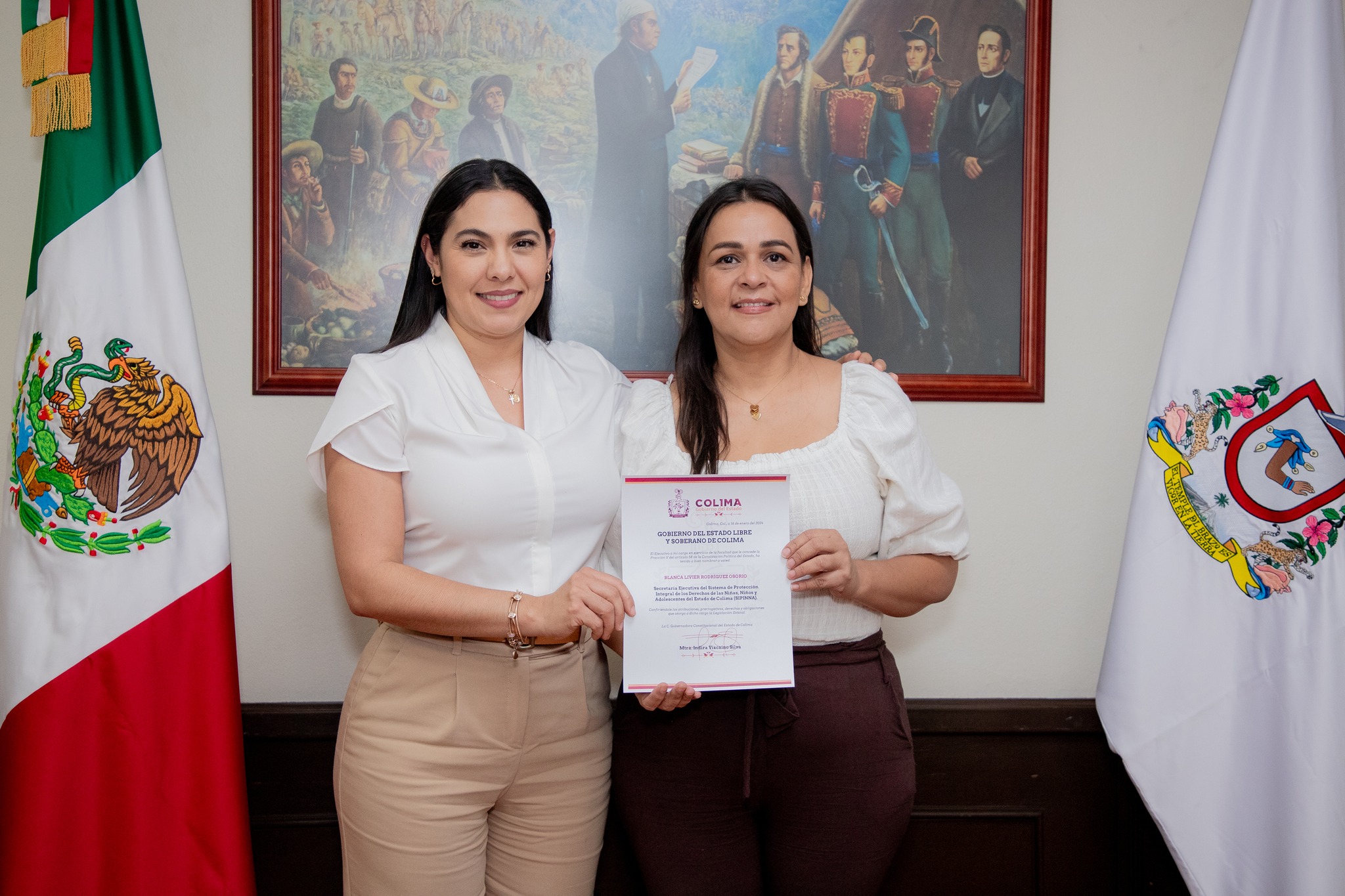 La tarde de este miércoles, la gobernadora de Colima, Indira Vizcaíno Silva, entregó nombramientos a Blanca Livier Rodríguez Osorio como secretaria ejecutiva del Sistema de Protección Integral de los Derechos de las Niñas, Niños y Adolescentes (Sipinna) del Estado de Colima y a Rafael Contreras Ochoa como encargado del Despacho de la Dirección General del DIF Estatal, en sustitución de Rosi Bayardo Cabrera.