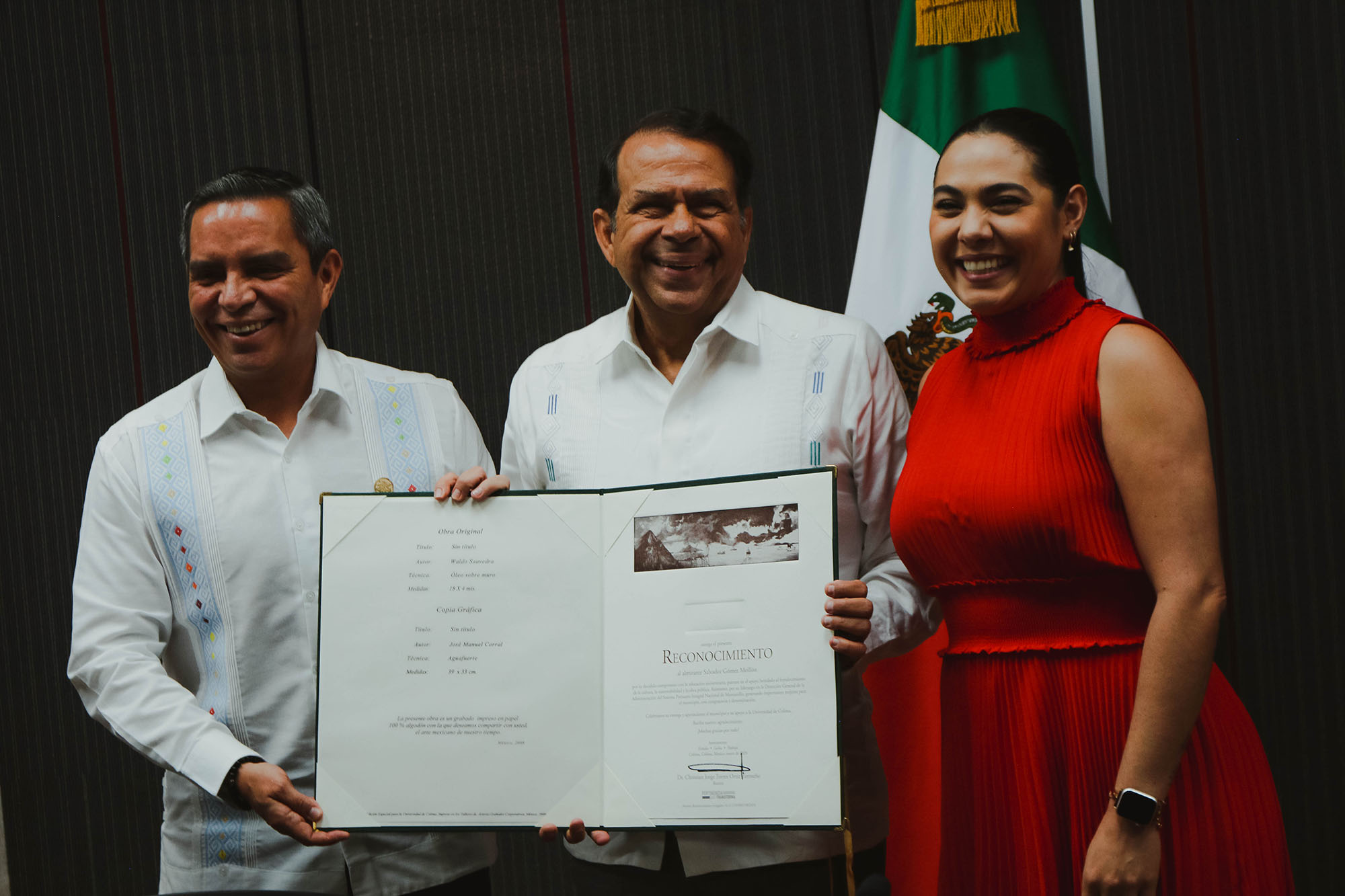 El rector entregó un reconocimiento al almirante Salvador Gómez por su trabajo para el crecimiento de Manzanillo, su congruencia, determinación y el apoyo brindado a la Universidad de Colima.