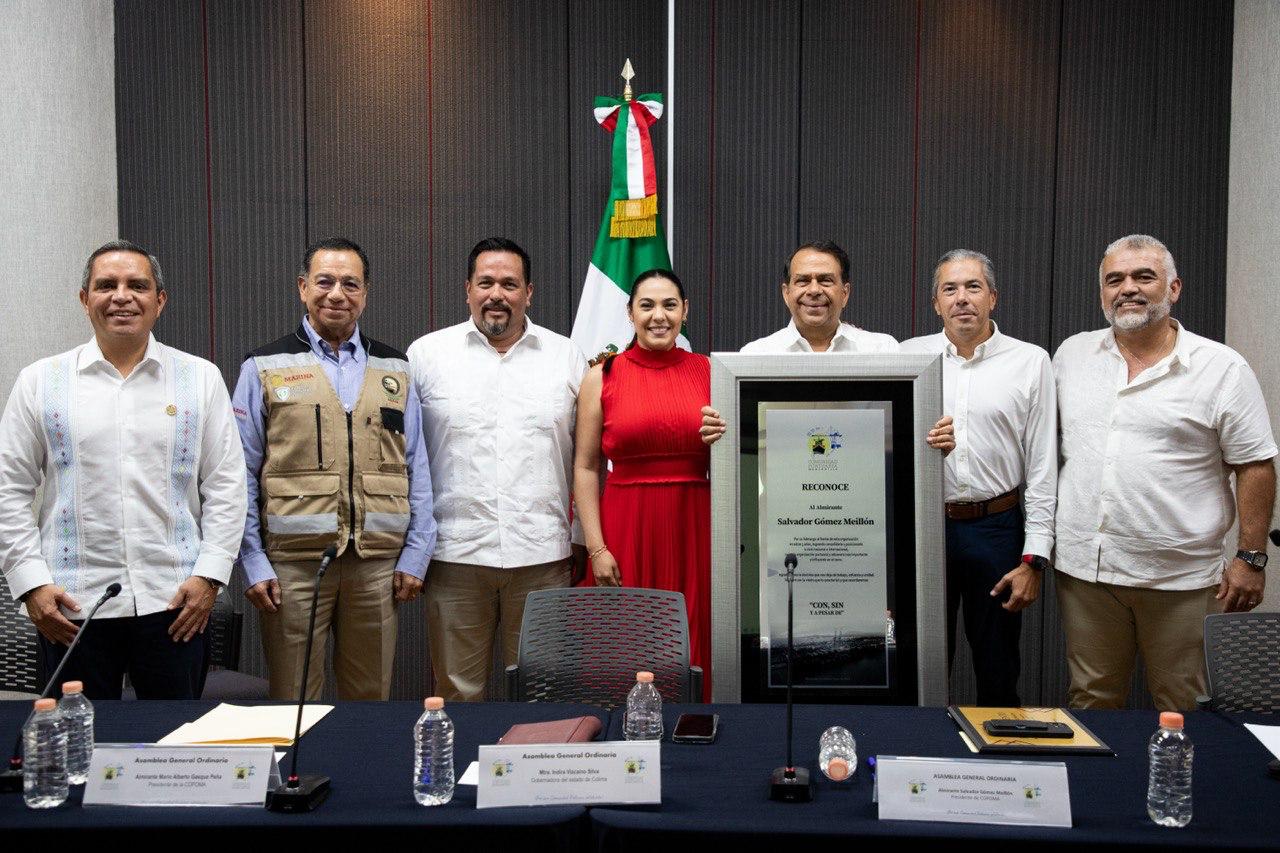 Este viernes, el rector de la Universidad de Colima, Christian Jorge Torres Ortiz Zermeño asistió a la asamblea general ordinaria de la Comunidad Portuaria de Manzanillo (COPOMA), donde agradecieron y reconocieron al almirante Salvador Gómez Meillón por su labor al frente de la Administración del Sistema Portuario Nacional (ASIPONA).