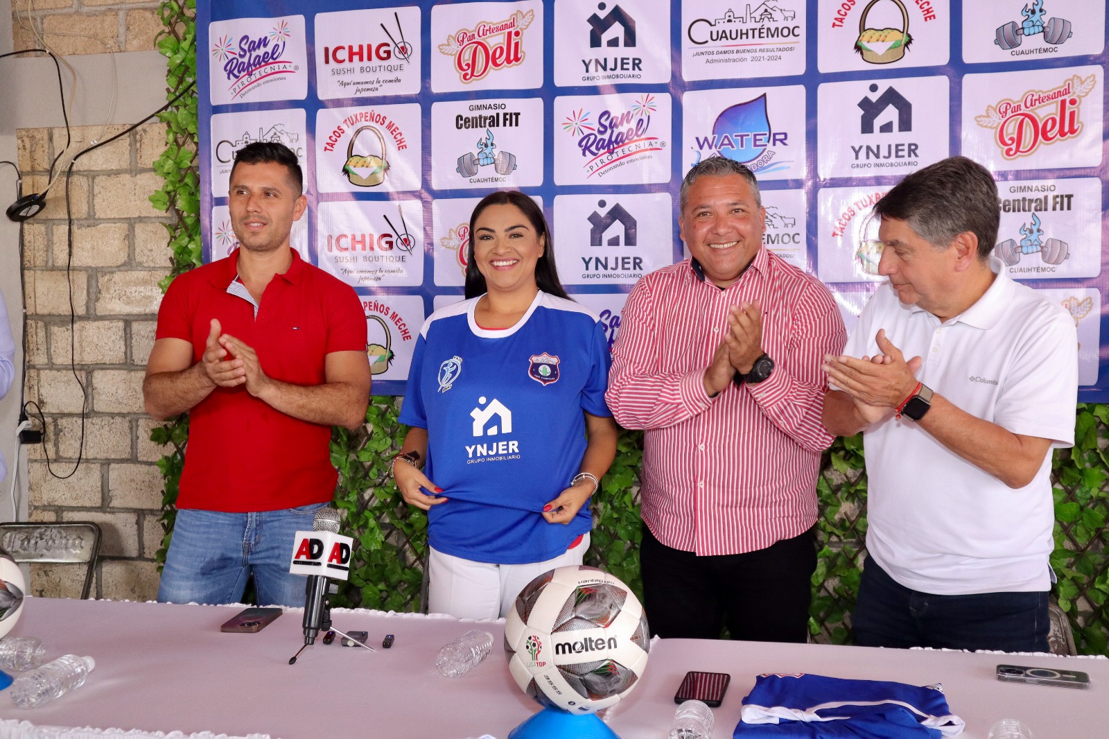 La presidenta municipal de Cuauhtémoc, Gabriela Mejía Martínez, encabezó el evento de presentación del Club de Futbol de Tercera División YNJER Cuauhtémoc, que impulsará la práctica de este deporte en el municipio para promover a nuevos talentos a nivel nacional e internacional.