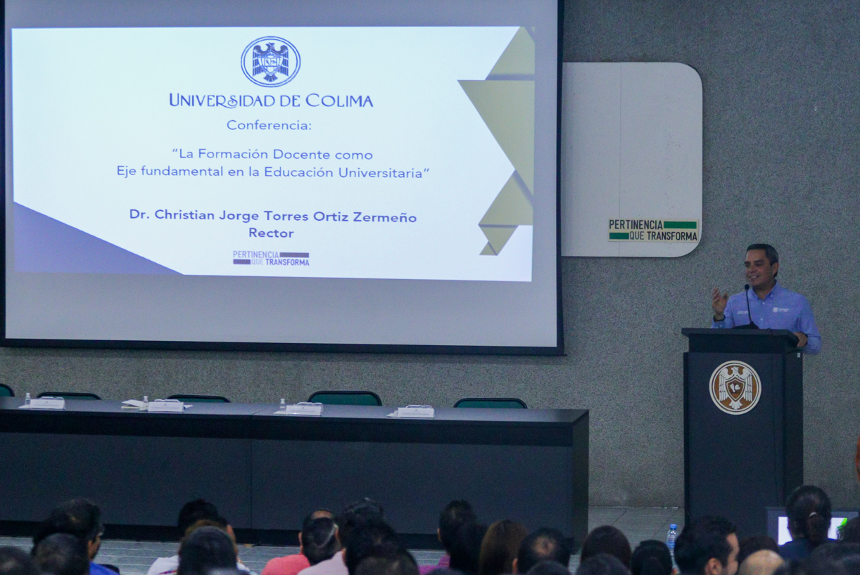 Con la charla “La formación Docente como Eje fundamental en la Educación Universitaria”, impartida por Christian Jorge Torres Ortiz Zermeño, rector de la Universidad de Colima, iniciaron los trabajos del Diplomado en Profesionalización de la Docencia en el Nivel Medio Superior en la Nueva Escuela Mexicana (NEM). En el diplomado participan 300 docentes de este nivel.
