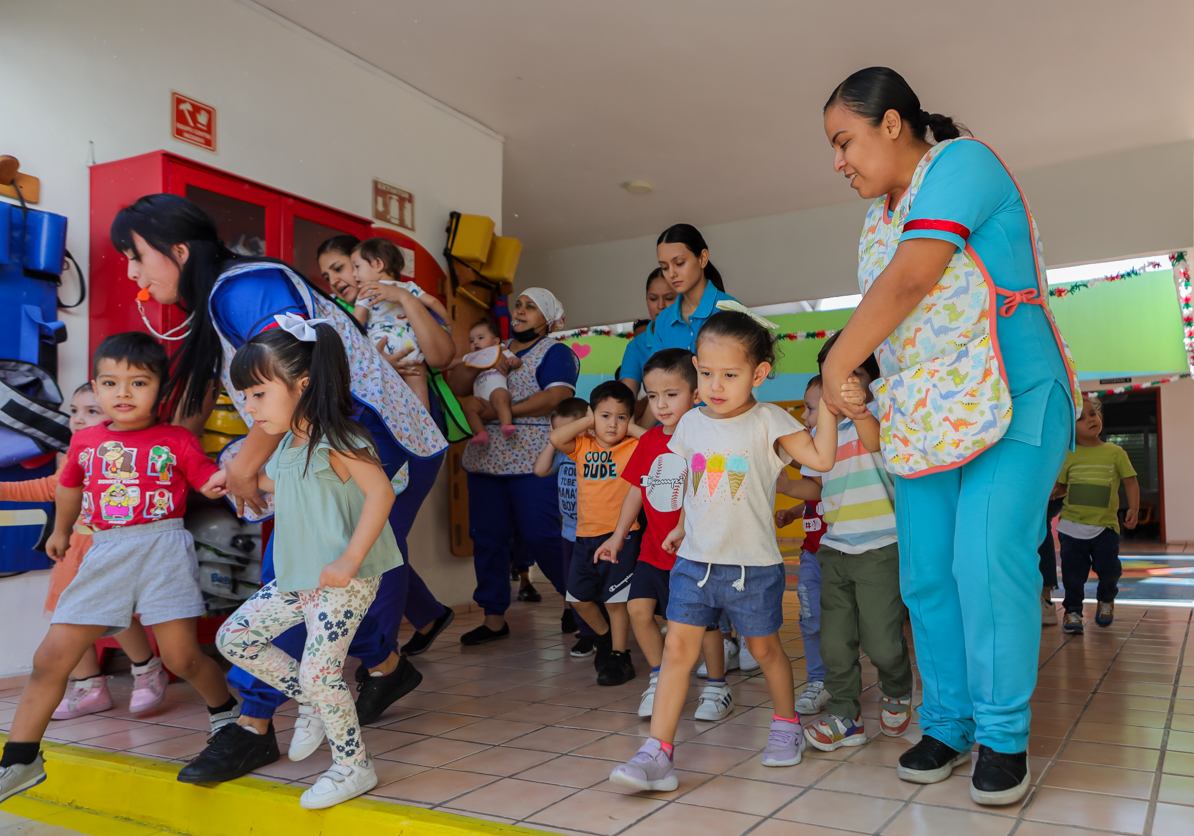 Durante el simulacro, 73 niñas y niños de la Estancia Infantil, junto con el personal que ahí labora, fueron evacuados en un promedio de 2 minutos, primero a las instalaciones del casino del SUTUC (que es un edificio contiguo a la Estancia) y después a un refugio temporal en el Laboratorio de Inclusión de la Facultad de Ciencias de la Educación de la UdeC, ubicado en el Campus Central.