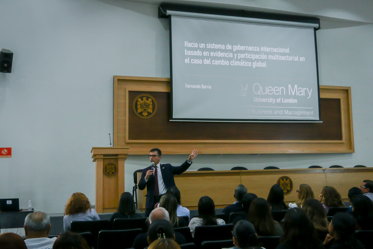 Al concluir el evento protocolario, el doctor Fernando Barrio, de la Queen Mary University of London dictó la conferencia: “Hacia un sistema de gobernanza internacional basado en evidencia y participación multisectorial en el caso del cambio climático global”.