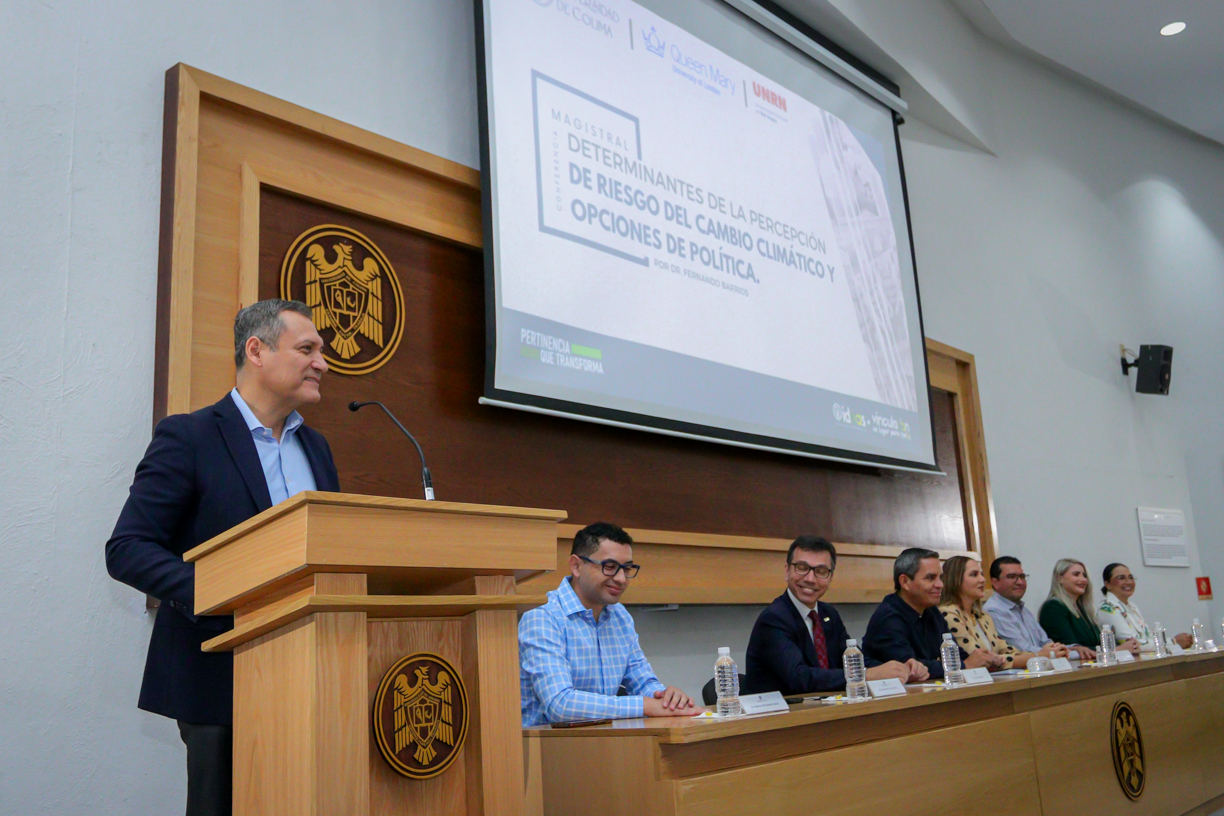 “En la Universidad de Colima tenemos claro que la atención a los grandes problemas no puede darse de forma individual, por ello trabajamos en la generación de alianzas que multipliquen las capacidades y esfuerzos para el beneficio colectivo”, señaló Christian Jorge Torres Ortiz Zermeño, rector de la Universidad de Colima, al inaugurar este viernes las actividades del proyecto “Determinantes de la percepción del riesgo del cambio climático y opciones de política pública”.