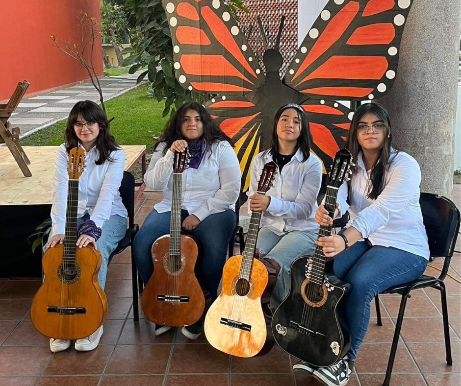 La agrupación “Azul Celeste” está integrada por Monse, Lilián, Marisela y Natalia, alumnas del Taller de Guitarra del CUBAM, dirigidas por el maestro Alejandro Quintero.