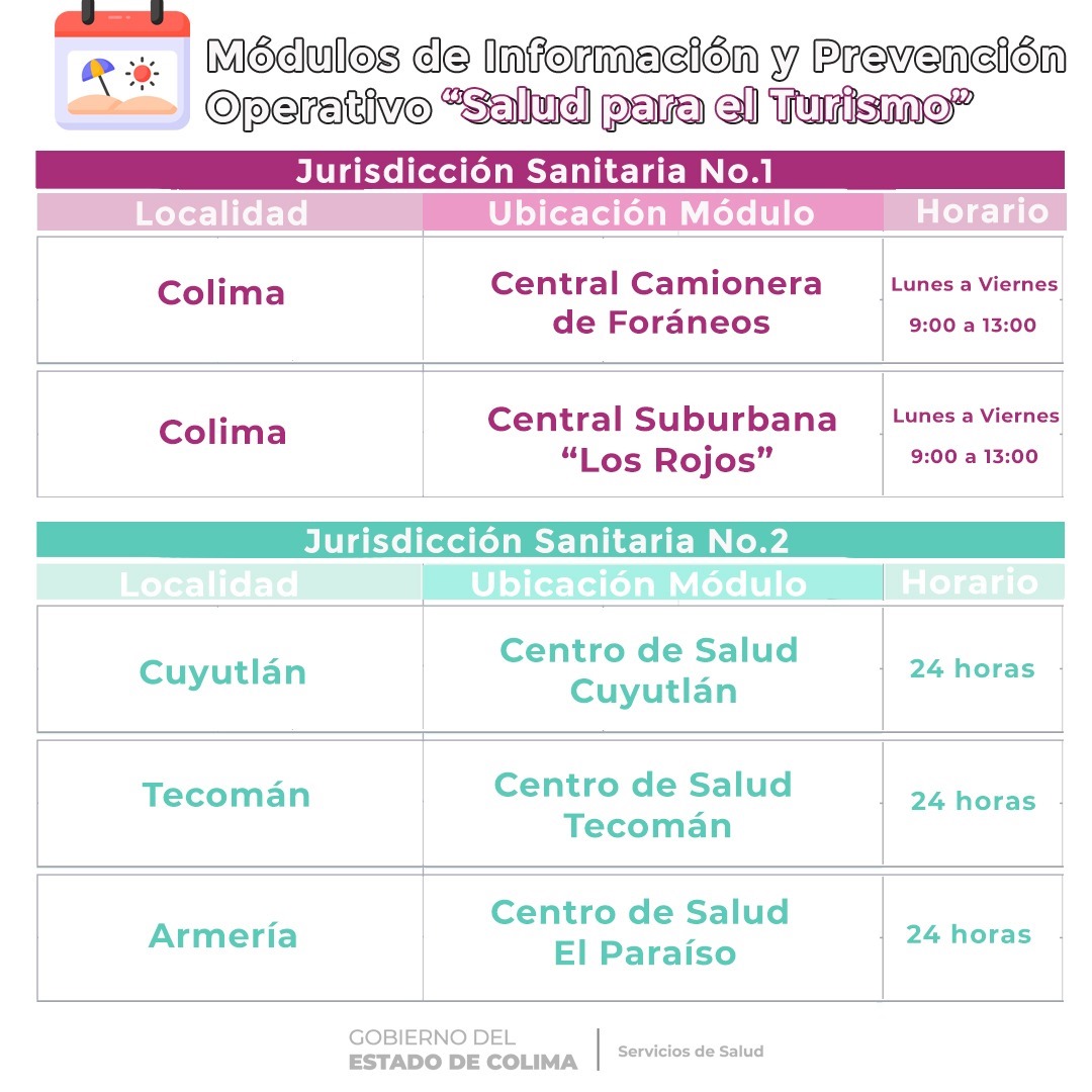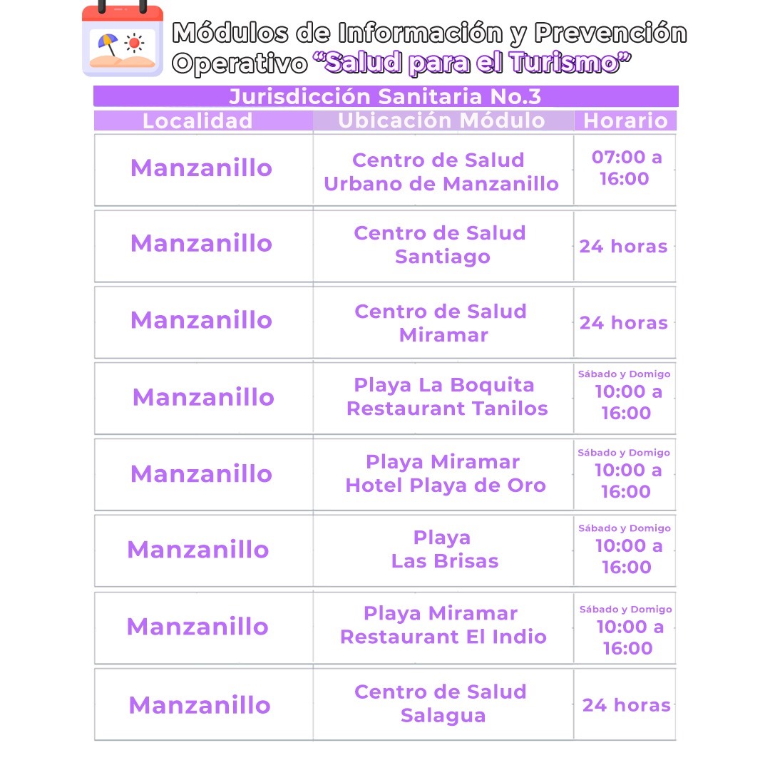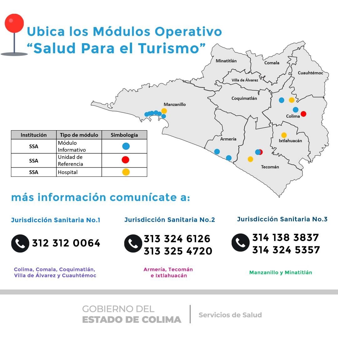 Si necesitas servicios en salud, checa las imágenes anexas a esta información y acude al módulo del Operativo Salud para el Turismo que se encuentre más cercano.