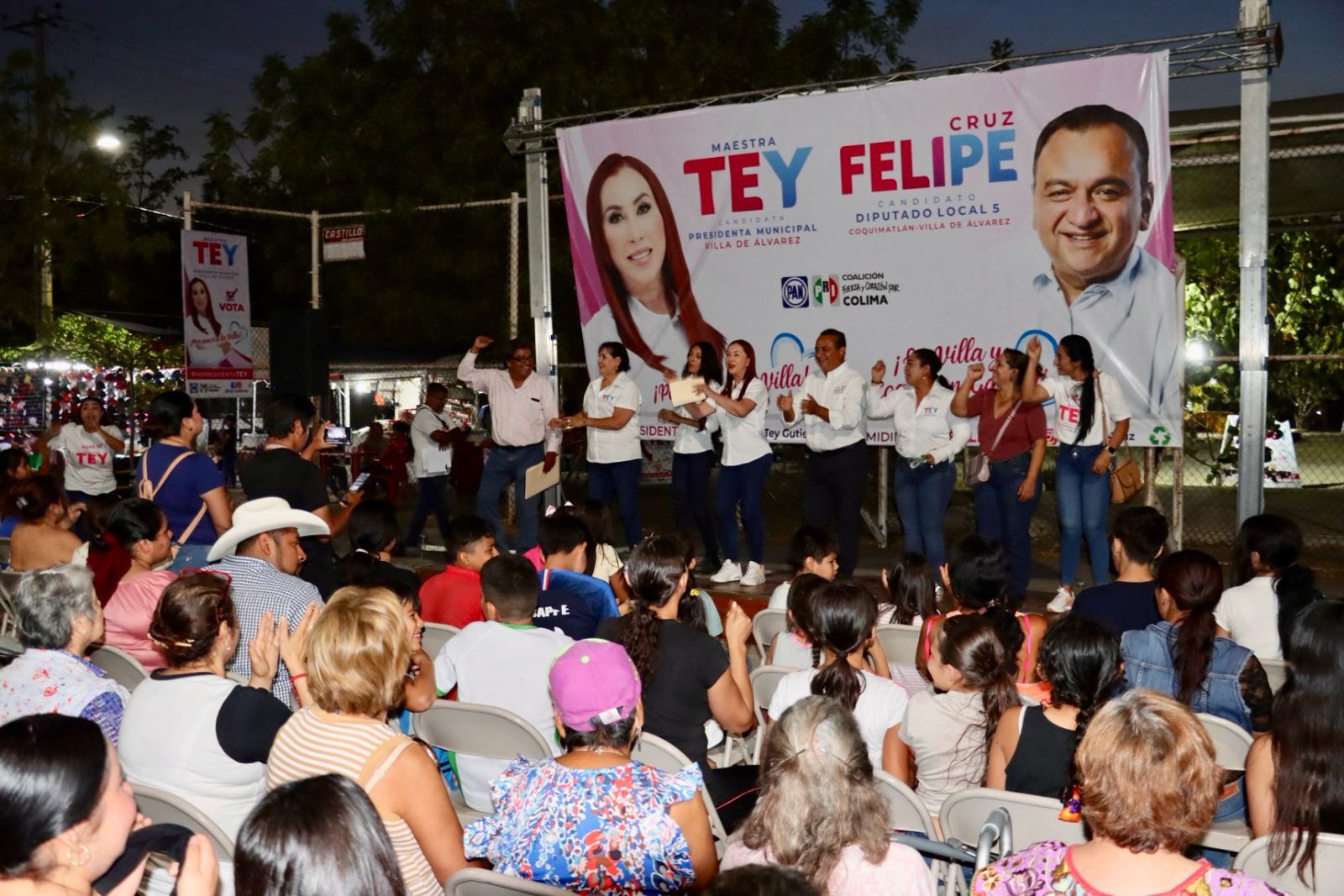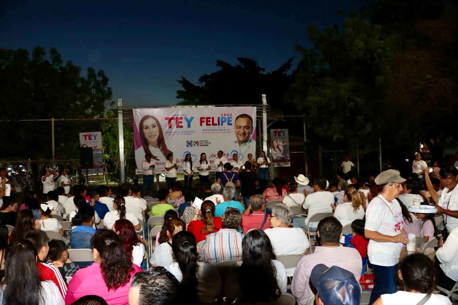 Villa de Álvarez, Col.- En la colonia Rancho Blanco, la candidata de la Coalición Fuerza y Corazón por Colima a la Presidencia Municipal de Villa de Álvarez, Tey Gutiérrez Andrade, asumió el compromiso de trabajar la próxima administración en diferentes obras, como la pavimentación de la calle José Padilla Córdova y la Prolongación de la Avenida Pablo Silva, entre otras vialidades.