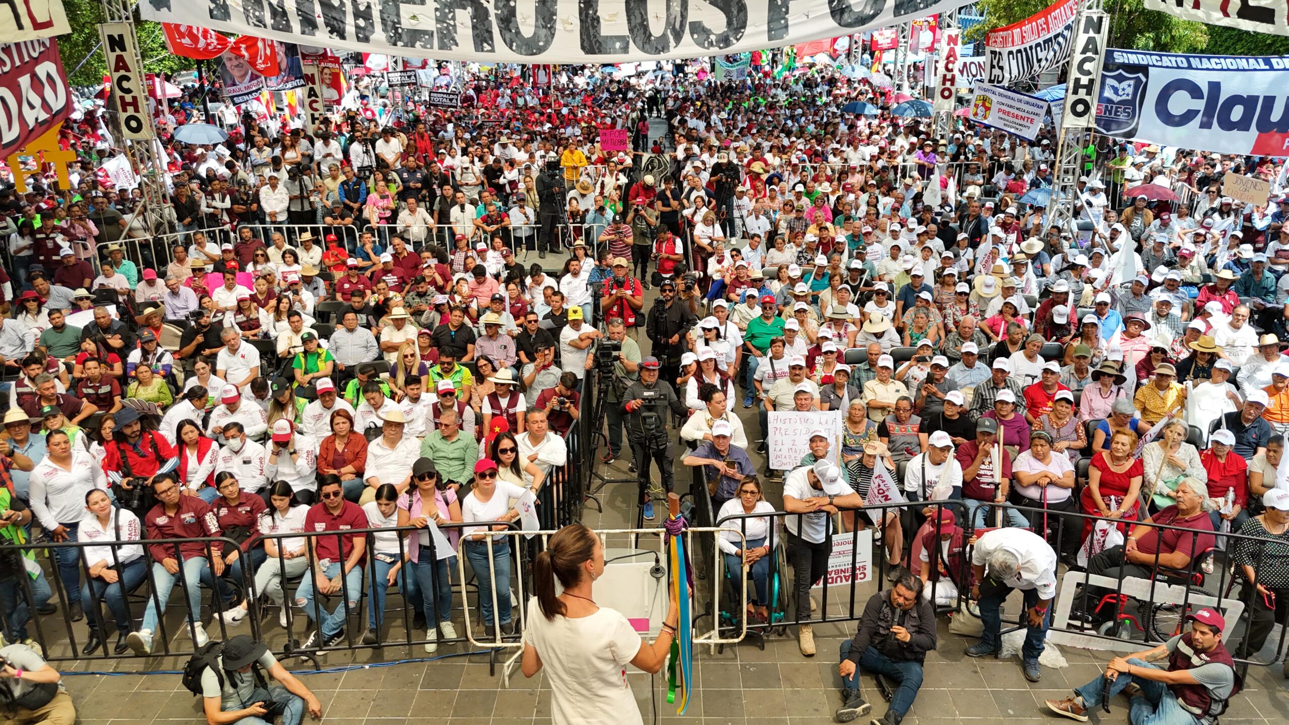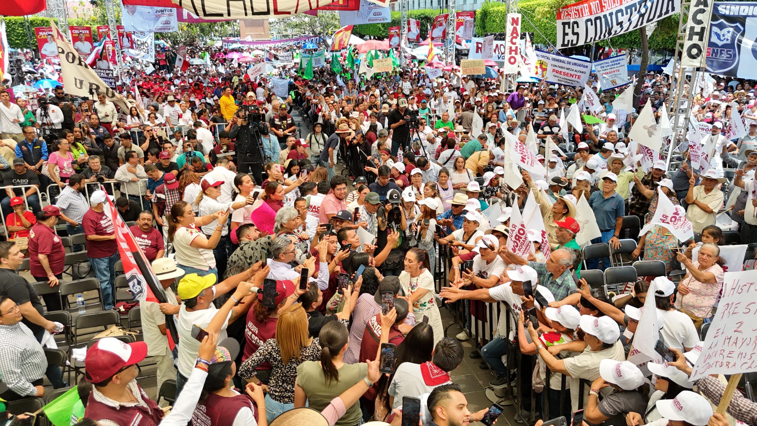 ’’Hoy la gente de Uruapan está aquí respaldando el apoyo a la continuidad de la 4T (…) Quiero reiterar tres cosas, que Morena está más fuerte que nunca, que somos un gran equipo y sobre todo que queremos ver a la doctora Claudia en Palacio Nacional, porque somos más los que queremos que continúe la Cuarta Transformación, porque somos más los que queremos seguir haciendo historia, porque somos más los que queremos ver a la doctora Claudia en la Presidencia de la República’’, agregó.