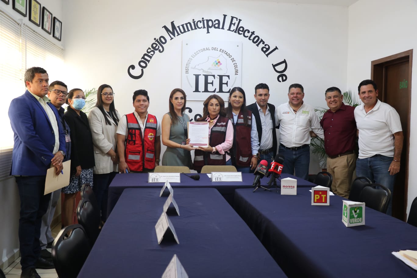 En cumplimiento a la sentencia de la Sala Regional Toluca del Tribunal Electoral del Poder Judicial de la Federación (TEPJF), la coalición “Sigamos Haciendo Historia en Colima” (Morena-PT-PVEM) acudió este viernes a solicitar el registro de López Legorreta y su planilla a la Presidencia Municipal de Colima, que habrá de revisar la documentación para determinar si valida o no la solicitud presentada.