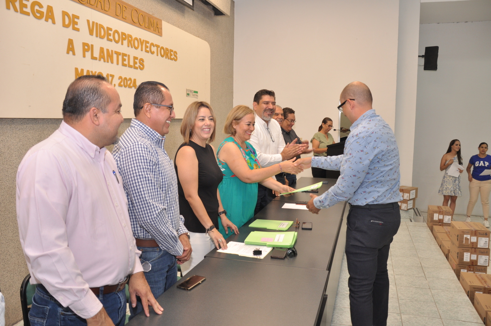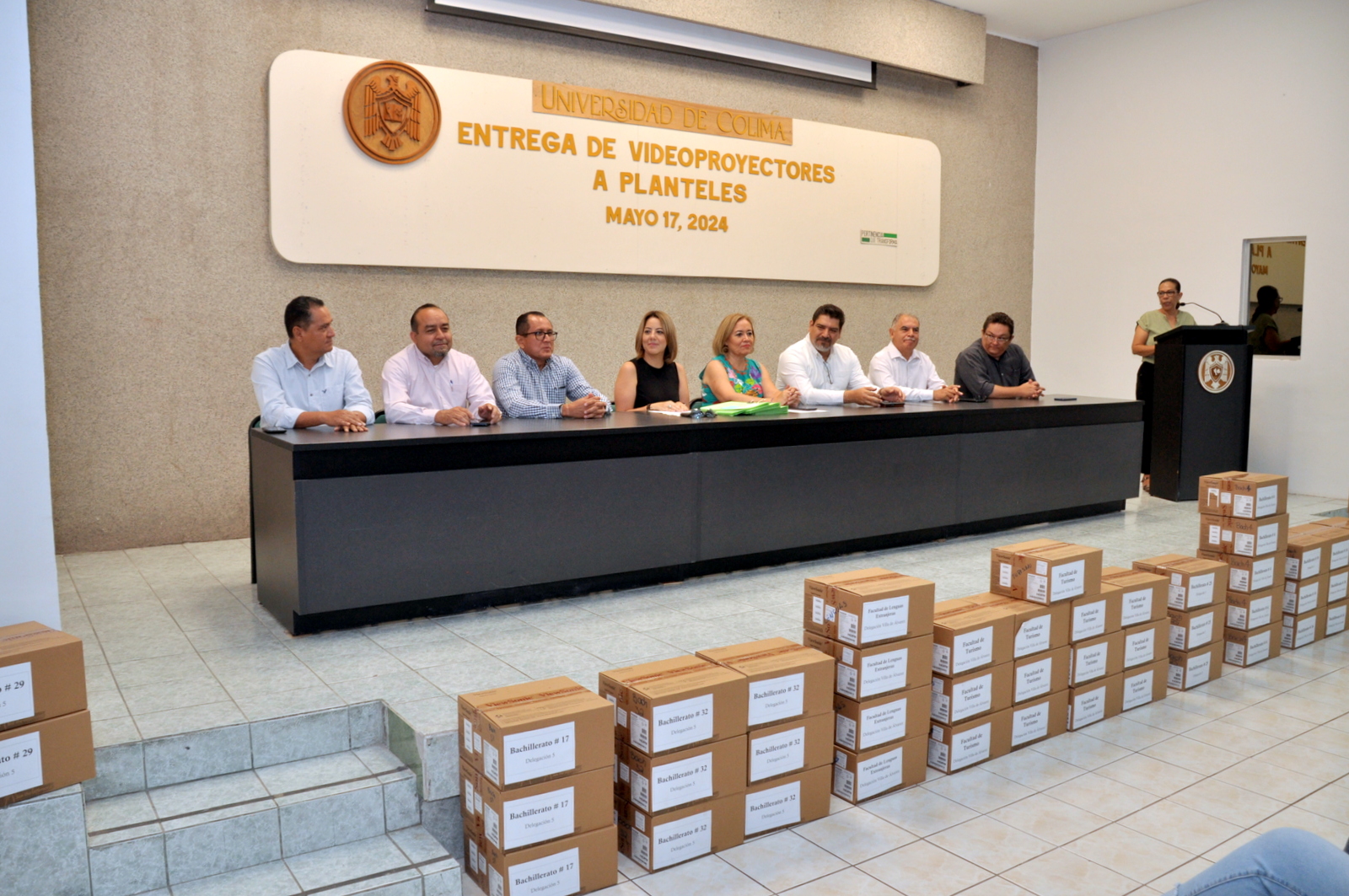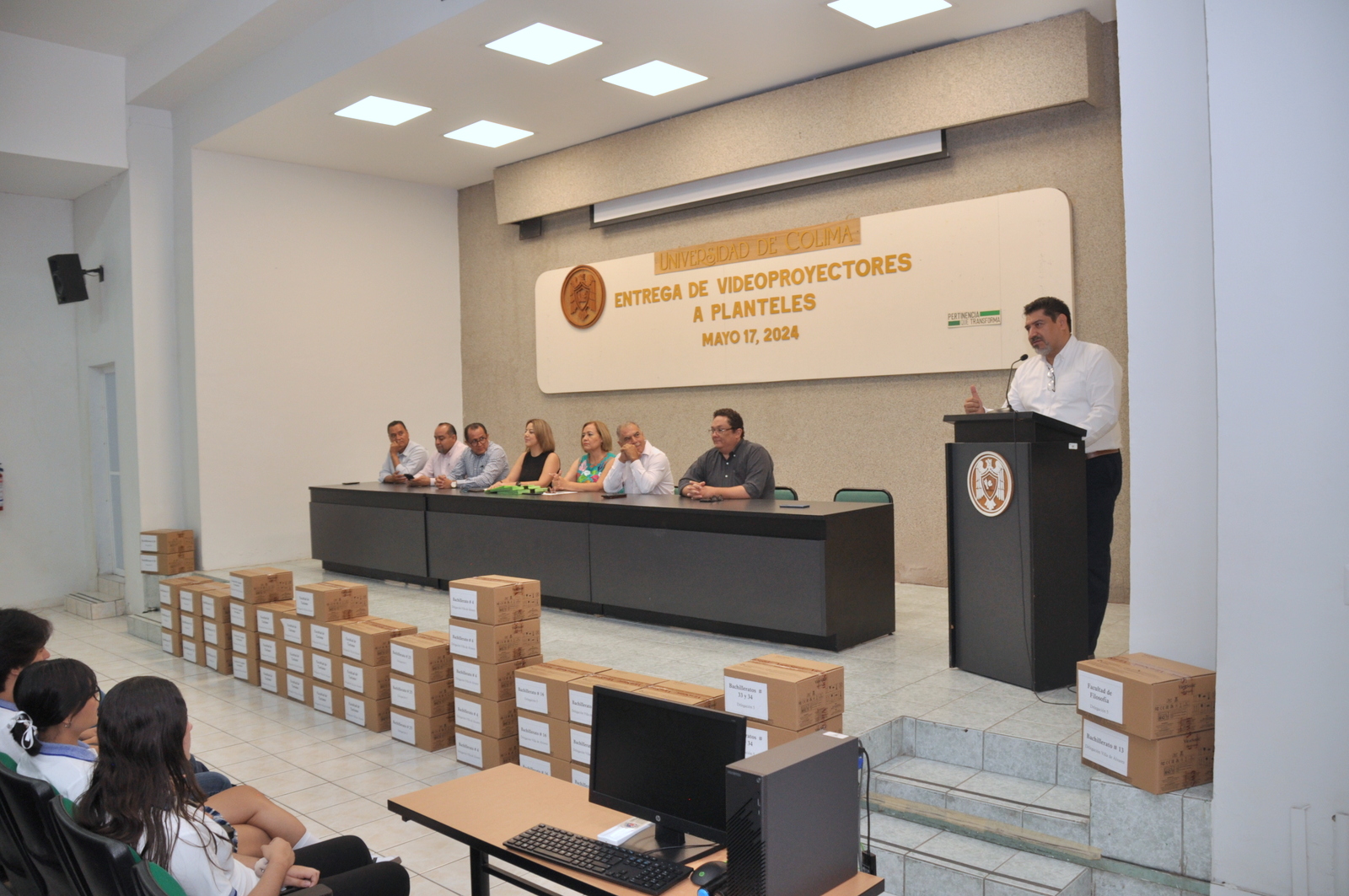 Con la presencia del personal directivo y alumnos, se realizó este viernes la entrega de 214 videoproyectores a 34 planteles educativos de las delegaciones universitarias de Colima, Coquimatlán y Villa de Álvarez, en el auditorio de Psicología del campus Central de la Universidad de Colima (UdeC).