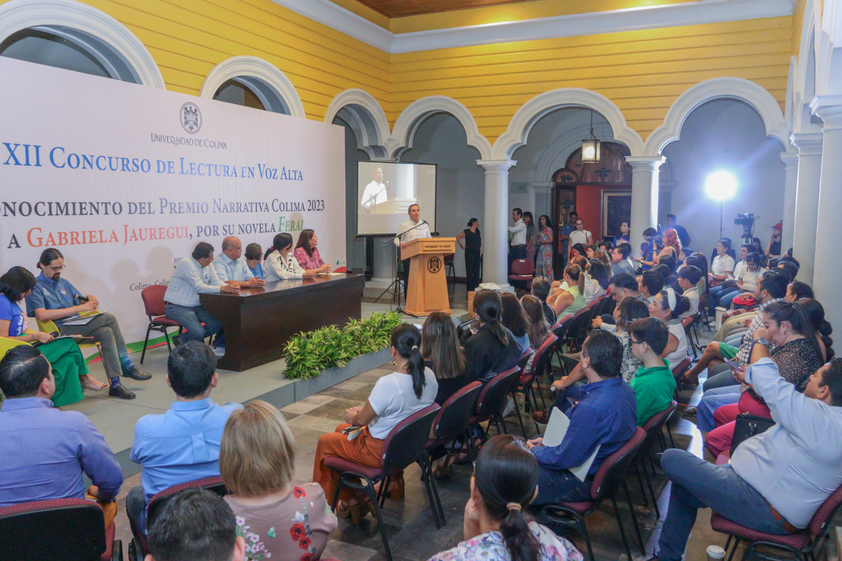 Este concurso de lectura en voz alta, dijo Christian Torres Ortiz, se ha convertido en una tradición en la Universidad. “Se trabajó en los bachilleratos, invitando e identificando ese talento que tenemos”. La final, realizada en la sala del vitral de la Pinacoteca, contó con la presencia de Gabriela Jáuregui, premio Narrativa Colima 2023 por su novela Feral.