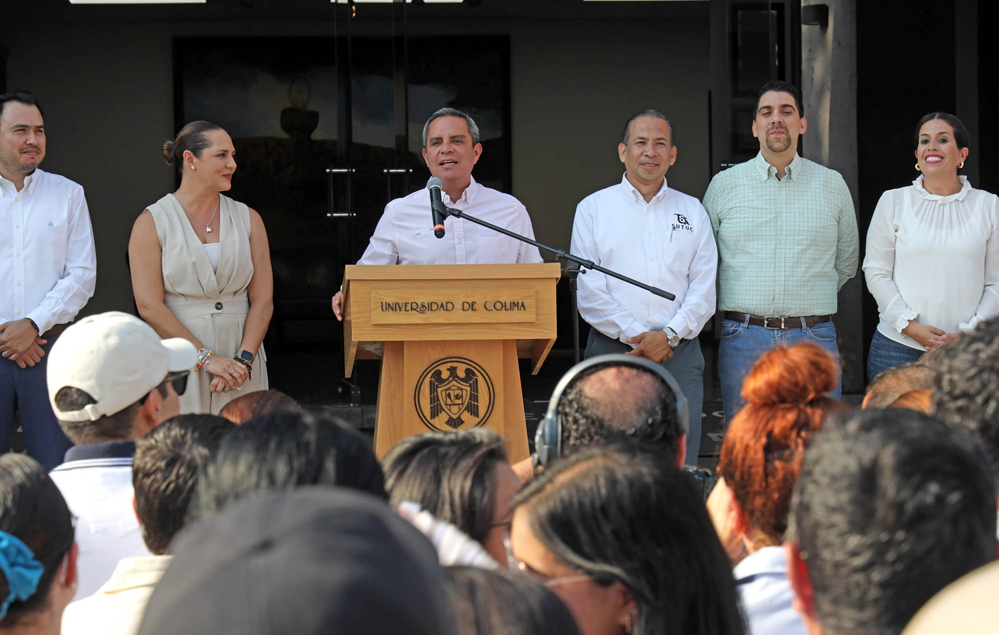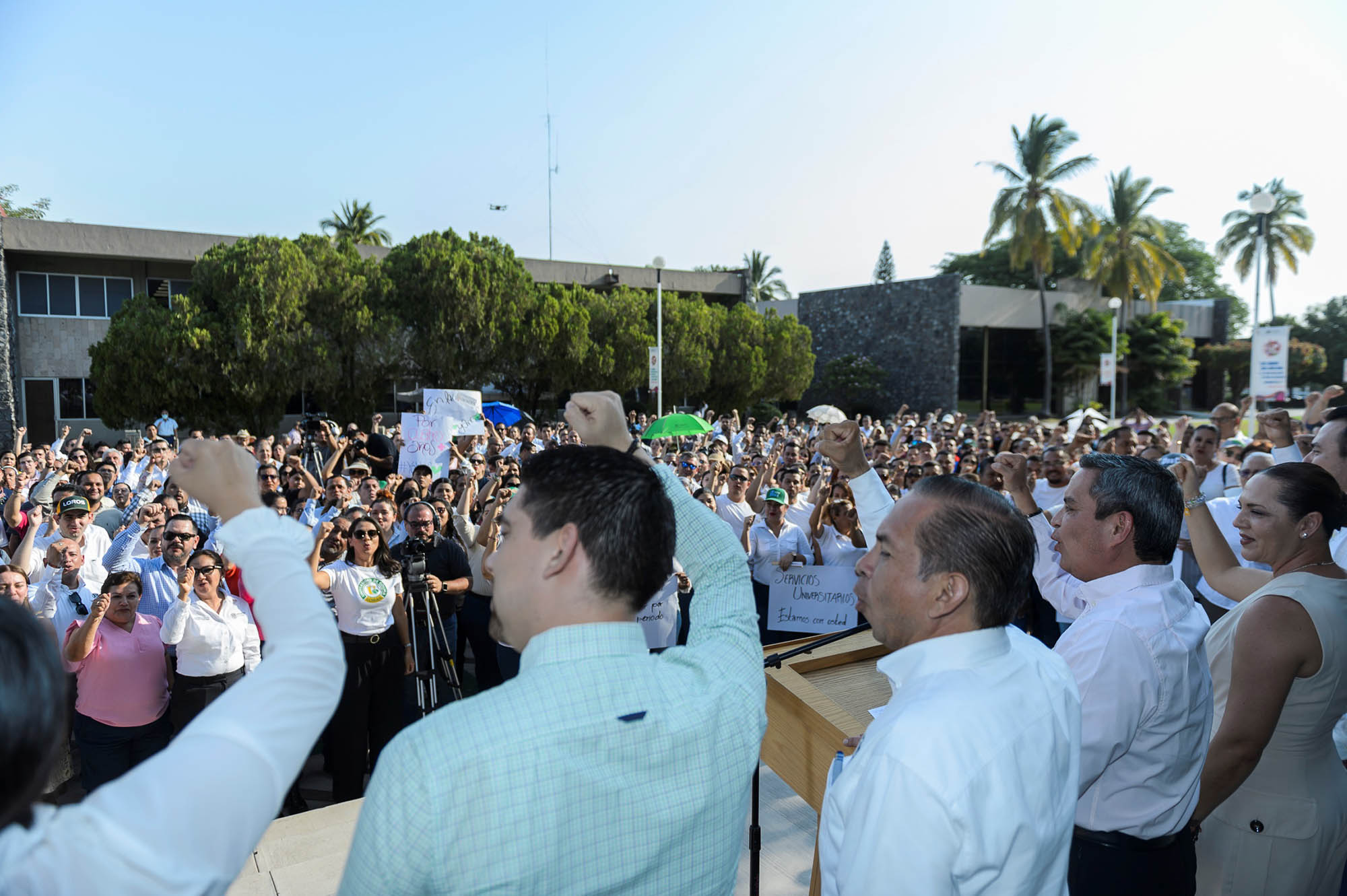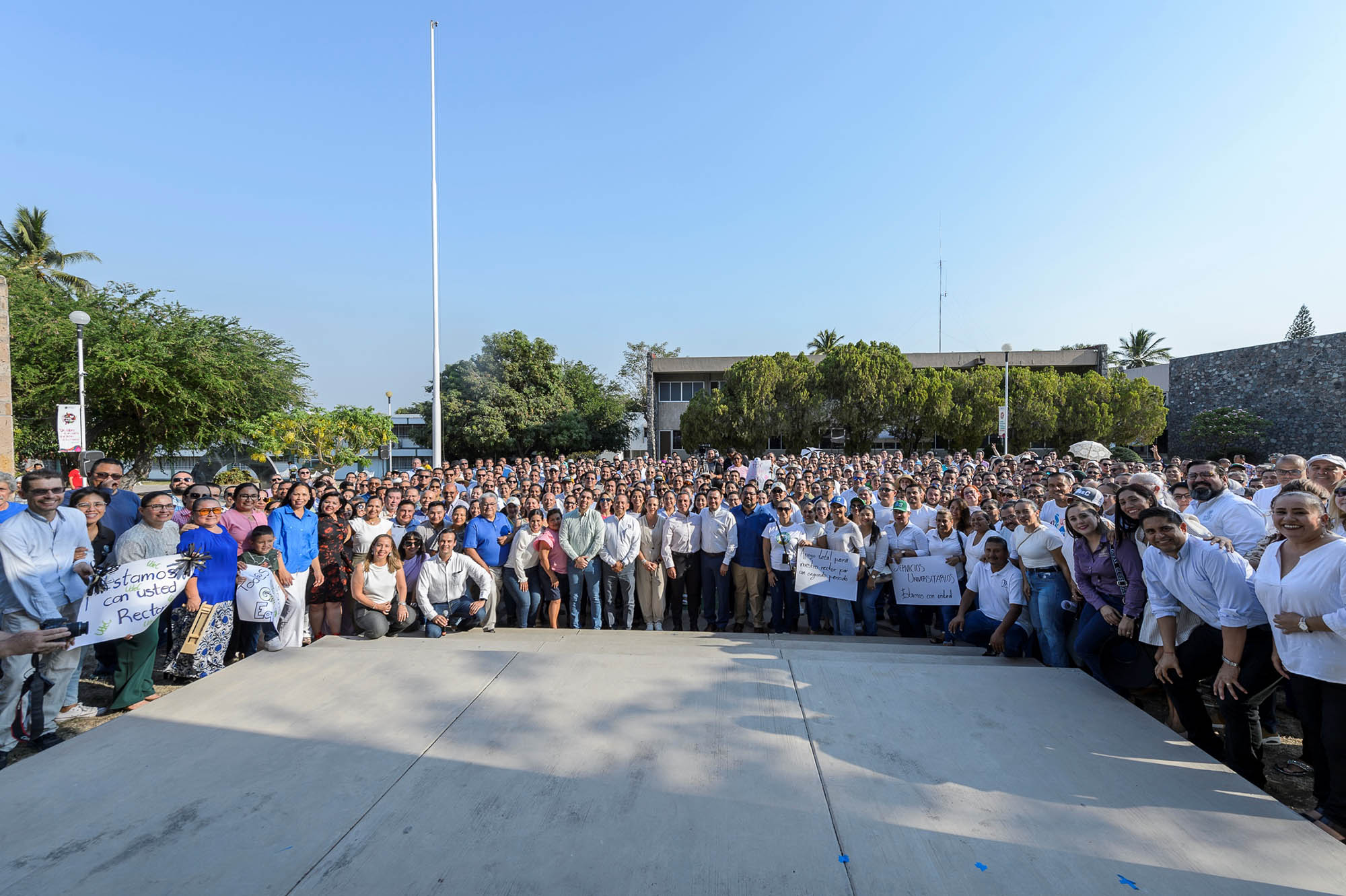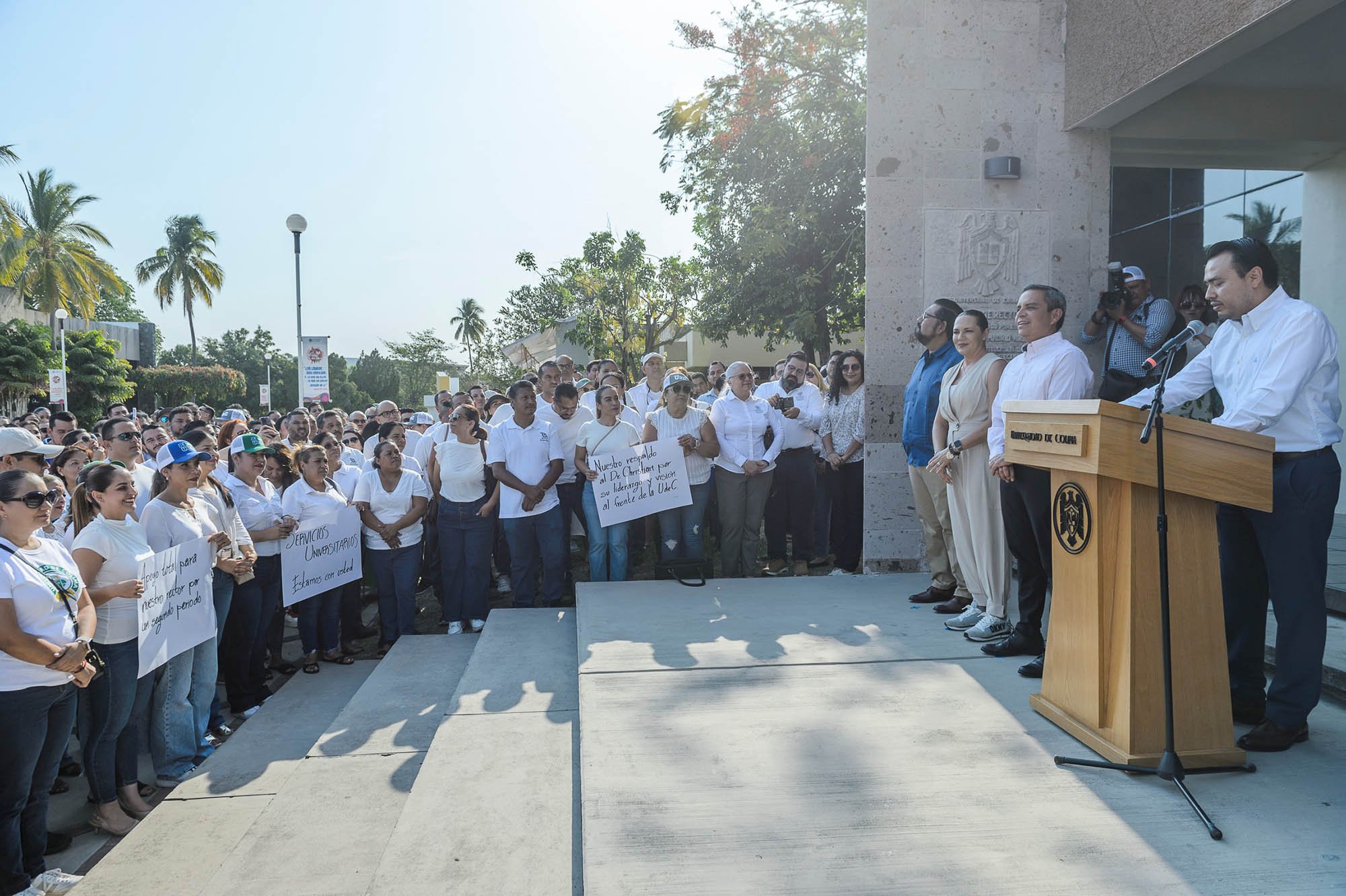 Alrededor de 160 directivos universitarios acompañados por un grupo de trabajadores administrativos, se pronunciaron este martes por la tarde en la explanada de rectoría, a favor de la reelección de Christian Torres Ortiz Zermeño como rector de la Universidad de Colima para el periodo 2025 – 2029.
