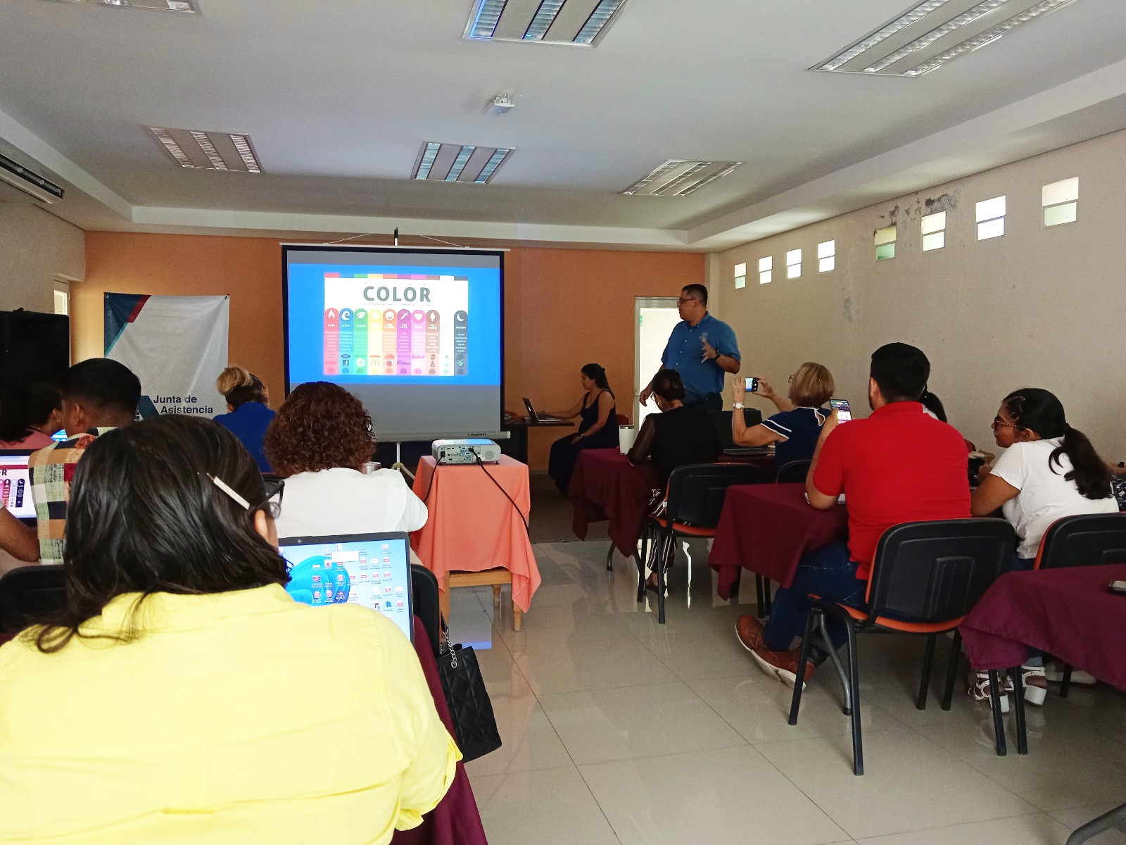 En el taller, las y los representantes de las diferentes instituciones aprendieron conceptos básicos del diseño gráfico y cómo aplicarlos mediante la plataforma Canva para crear sus propias imágenes publicitarias, y así, mejorar su comunicación visual y mantener una imagen institucional confiable.