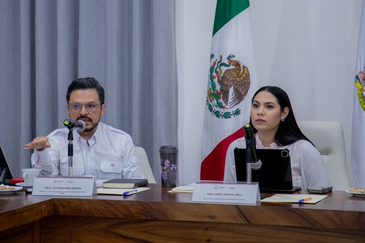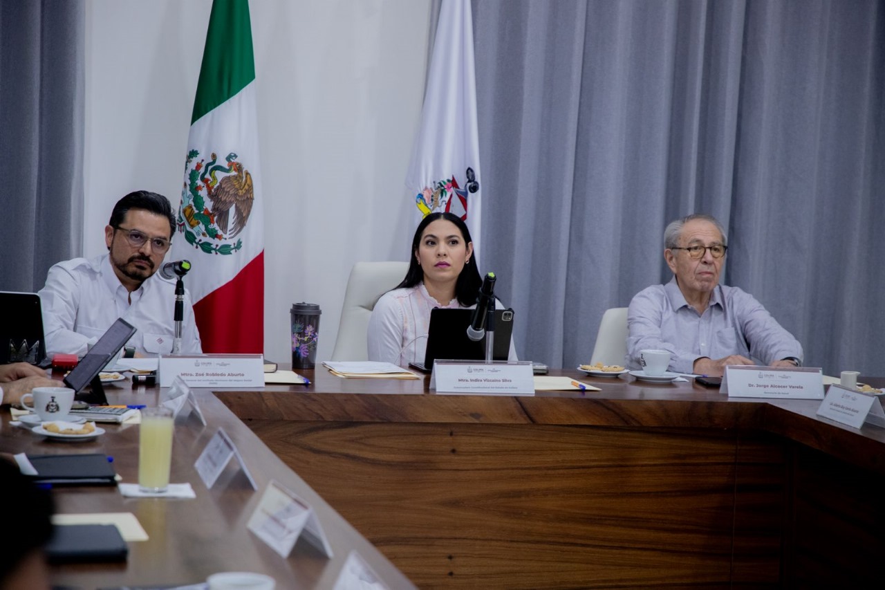 La gobernadora de Colima, Indira Vizcaíno Silva, se reunió este viernes, en Casa de Gobierno, con el director general del Instituto Mexicano del Seguro Social (IMSS), Zoé Robledo Aburto; el secretario de Salud del Gobierno de México, Jorge Alcocer Varela, entre otras autoridades estatales y federales, para evaluar los avances del IMSS-Bienestar en la entidad.
