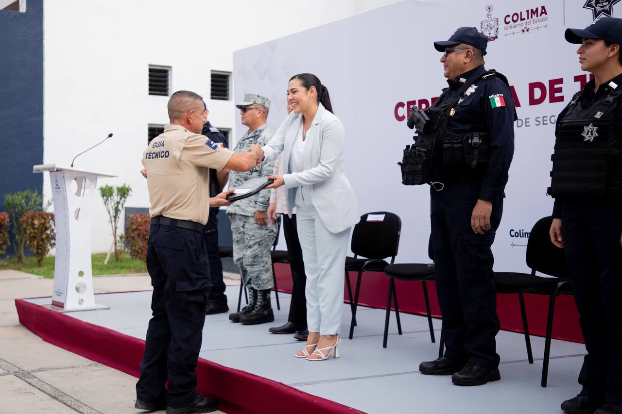 Ahí, la gobernadora Indira Vizcaíno Silva aseguró que con este acto se reconoce la invaluable contribución a la paz de las y los colimenses, que todas y todos estos elementos han realizado por tantos años.