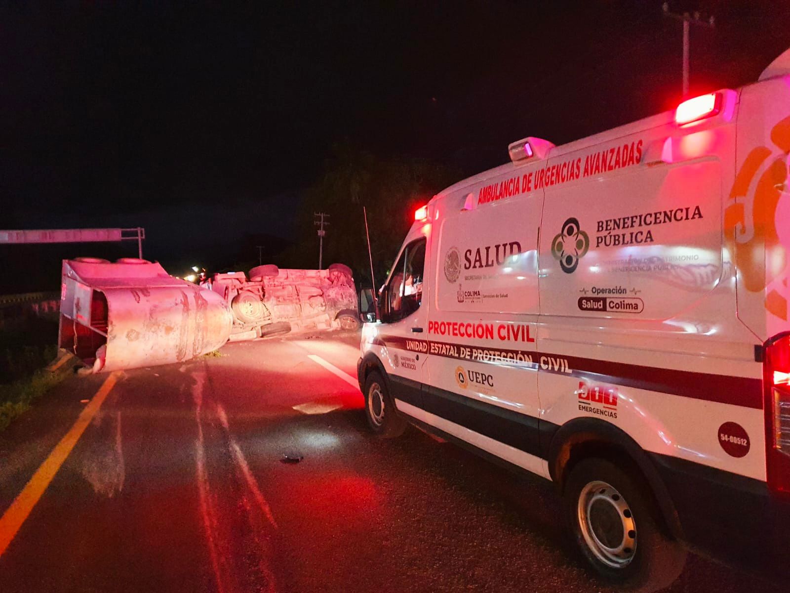 Paramédicos de la Unidad Estatal de Protección Civil del Gobierno del Estado de Colima acudieron al sitio para brindar la primera atención al conductor del vehículo.