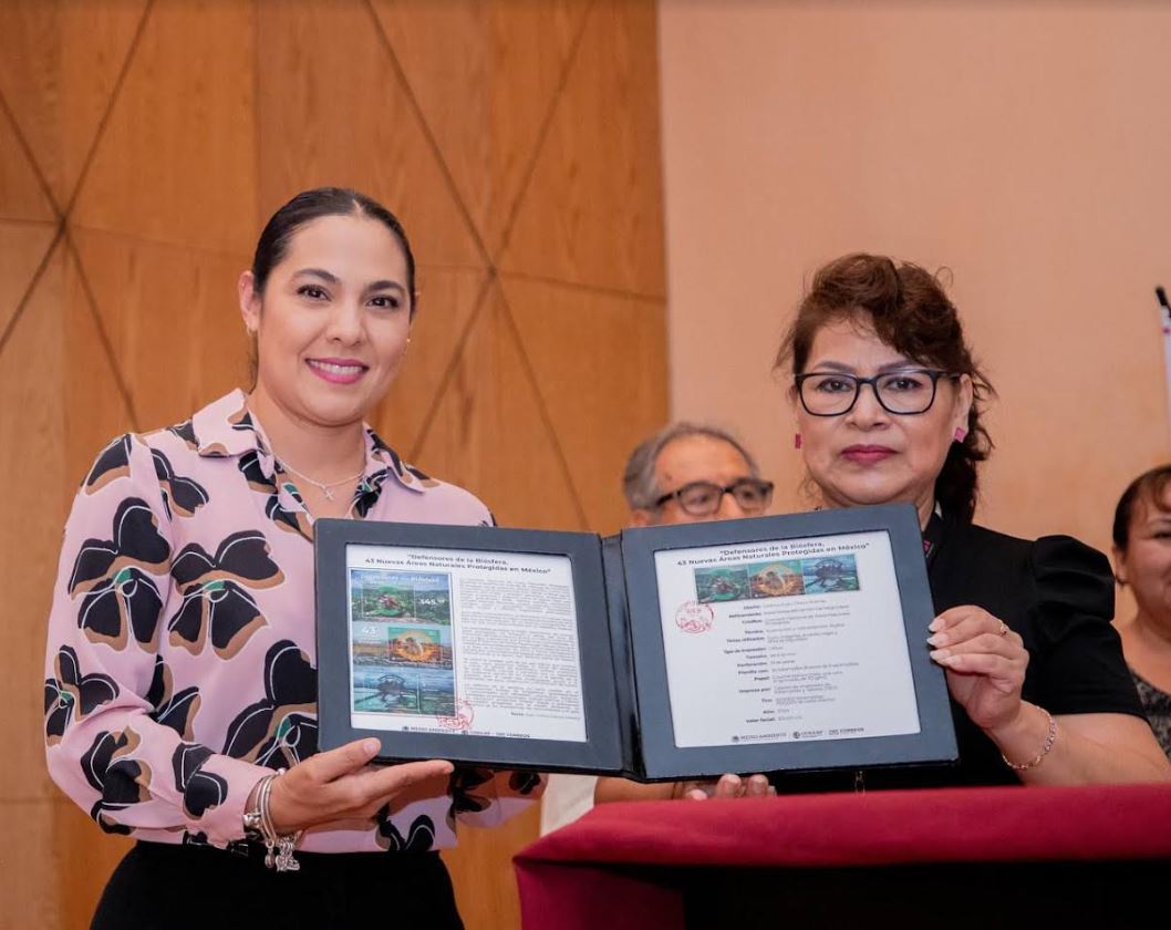 Ofelia Ramírez Sánchez, directora regional del Centro de Servicios Postales de México, destacó el compromiso de Correos de México por la conservación de estas áreas naturales, con este tipo de trabajos como la cancelación de timbres postales ‘Defensores de la Biosfera, 43 Nuevas Áreas Naturales Protegidas en México’.