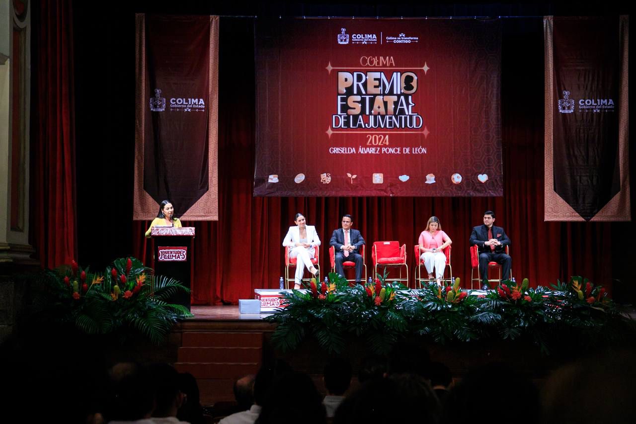 La tarde de este viernes, en el Teatro Hidalgo, la gobernadora del estado de Colima, Indira Vizcaíno Silva, entregó el Premio Estatal de la Juventud 2024 ‘Griselda Álvarez Ponce de León’ a siete mujeres y seis hombres, así como menciones honoríficas a otras cuatro mujeres, siete hombres y al grupo social ‘Manos Unidas’.
