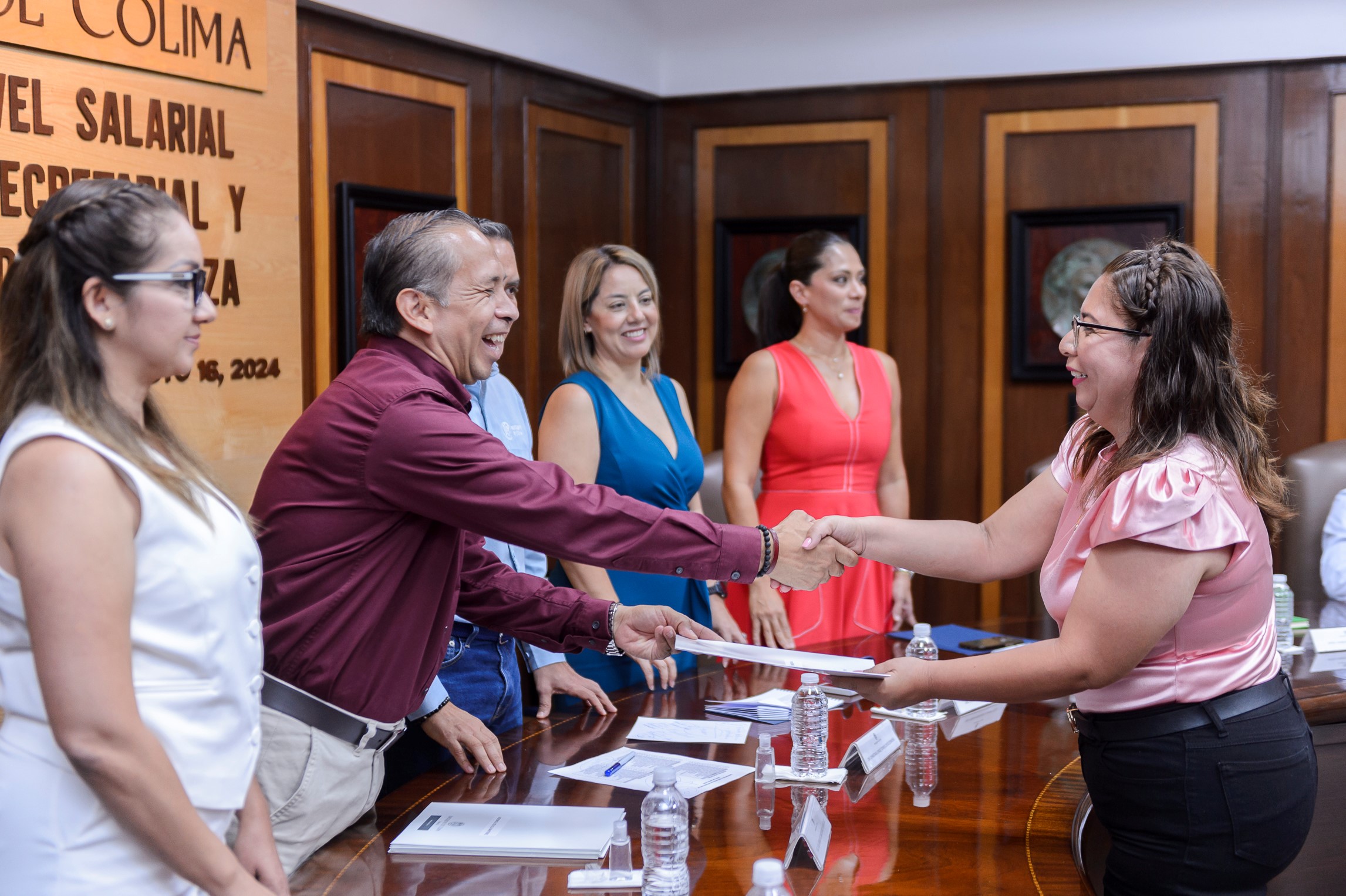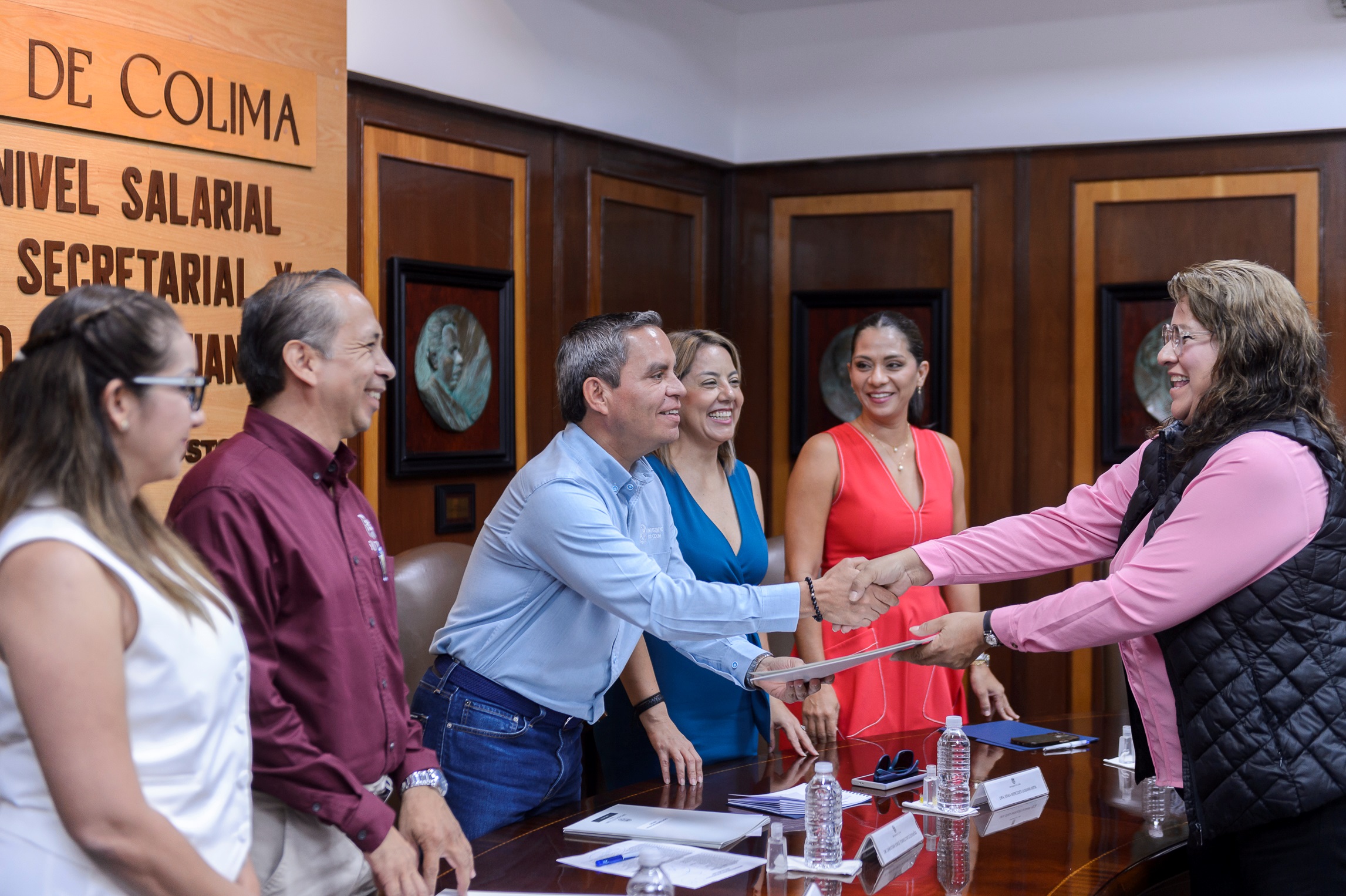 Este viernes, en la sala de juntas de la rectoría, Christian Torres Ortiz Zermeño, rector de la Universidad de Colima (UdeC), entregó a 55 trabajadores del personal secretarial y administrativo de confianza, los oficios que los acreditan como beneficiarios de la promoción de nivel salarial convocatoria 2024.