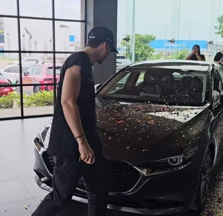 El Mazda que estrena Marco es color negro y en la entrega estuvo acompañado de su madre. Los empleados de la agencia estuvieron presentes en dicho momento que armonizaron la banda.