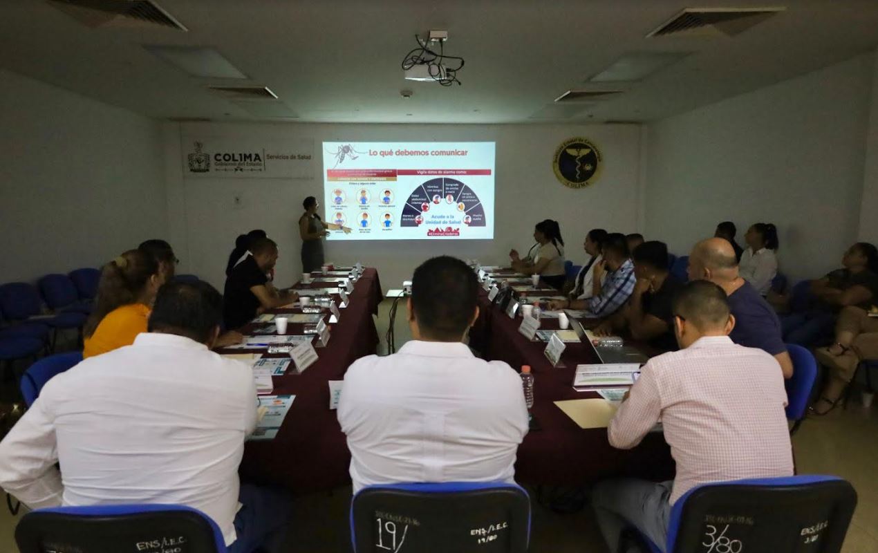 Durante la reunión extraordinaria de la Red Colimense de Municipios por la Salud, que presidió el secretario de Salud, Víctor Manuel Torrero Enríquez, se informó a las y los presidentes municipales y funcionarios de los ayuntamientos la situación epidemiológica del dengue y las medidas de control que se implementan para enfrentar esta contingencia.