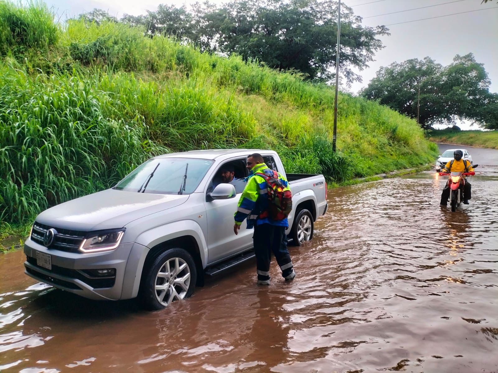 * Protección Civil Estatal atiende desbordamiento de río, personas lesionadas, autos varados, árboles caídos e incendio por fuga de gas